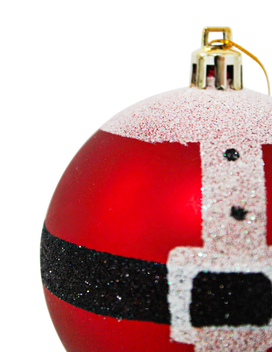 Esfera decorativa con un divertido diseño de traje de Santa Claus. Ideal para añadir un toque de fantasía, alegría y festividad.
