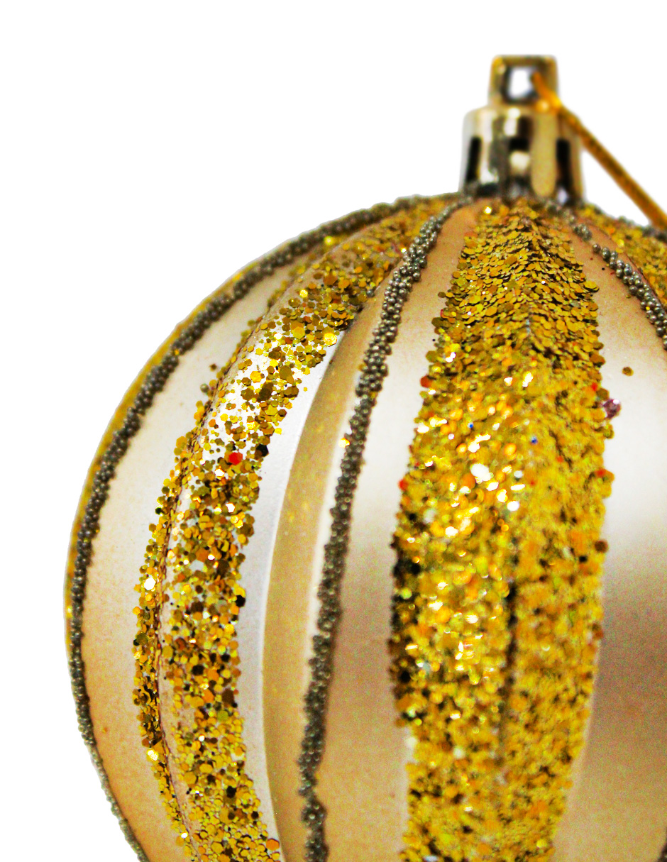 Esfera de plástico en color dorado con acabado diamantado. Ideal para un estilo lujoso, clásico y muy brillante.