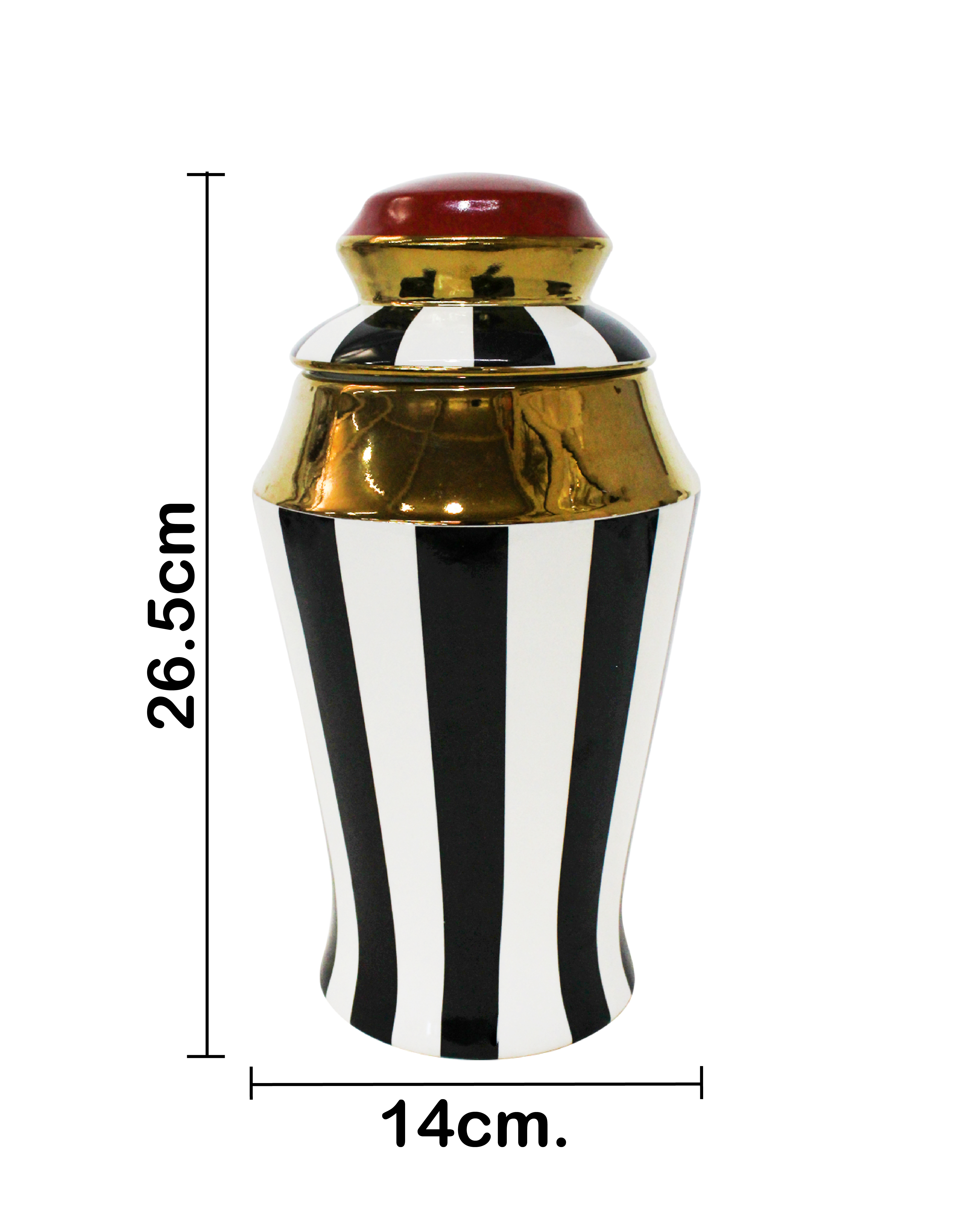 Especiero Porcelana Rayas Negro Tapa Roja (Alto)