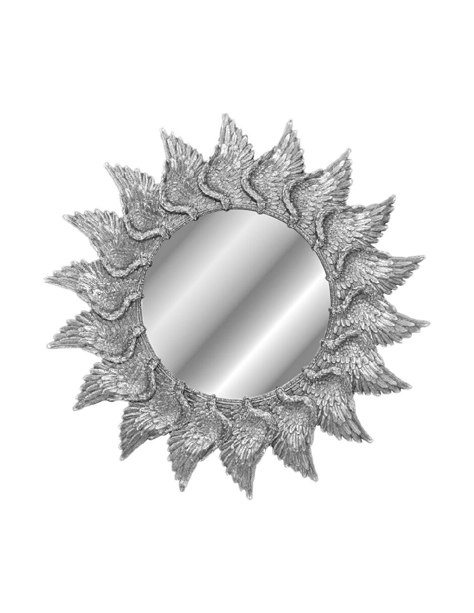 Espejo plateado de resina con orilla de alas de ángel de 75x3x75 cm