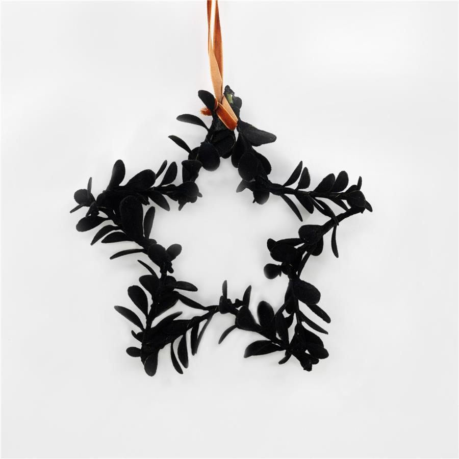 Estrella con hojas de terciopelo negro de 19x19x3.5cm