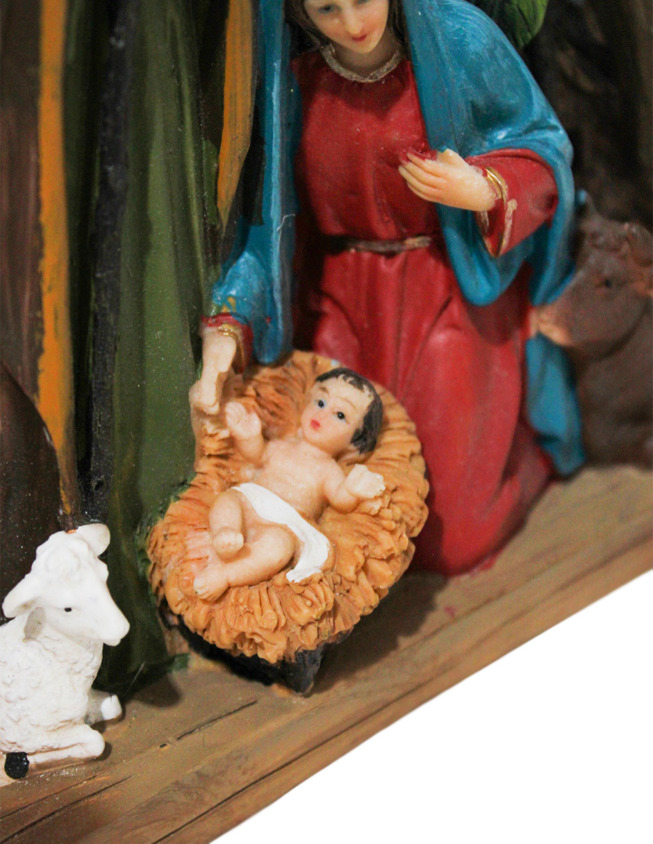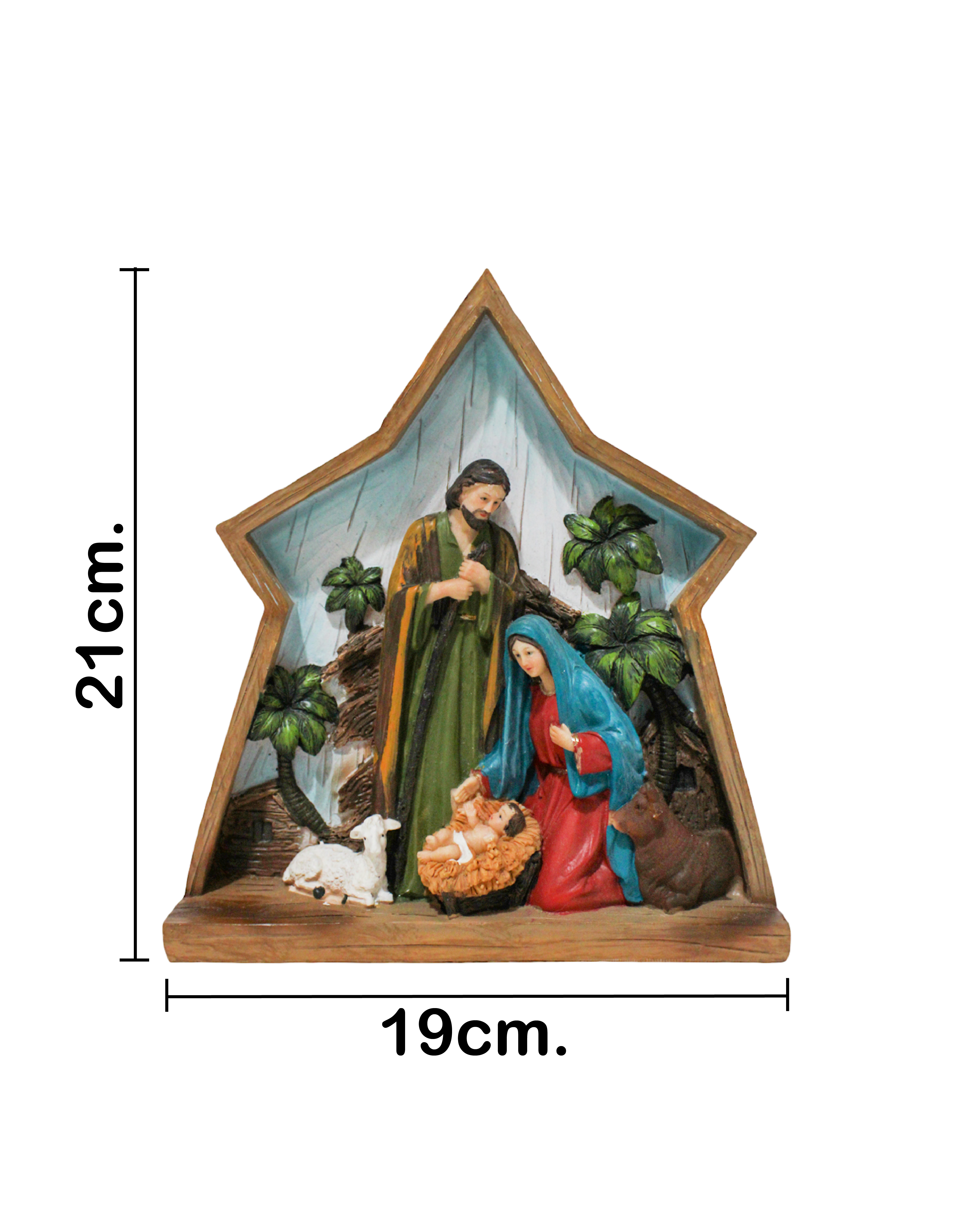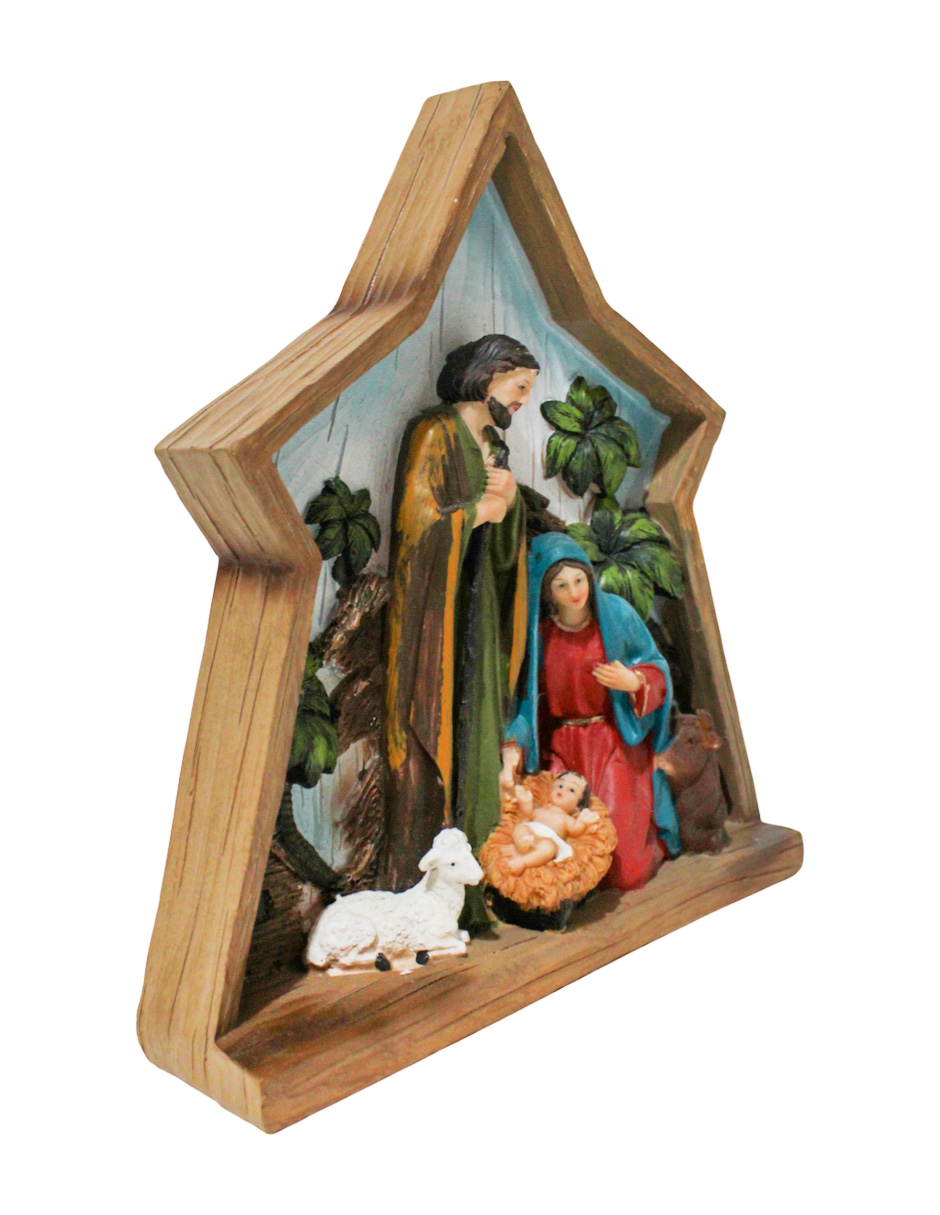 Una estrella de 19.7x6x21.6cm con un nacimiento en el interior. Esta pieza es ideal para decorar tu hogar en la temporada navideña, aportando un toque de fe y tradición. Su diseño único y su acabado de alta calidad lo convierten en un accesorio decorativo imprescindible.