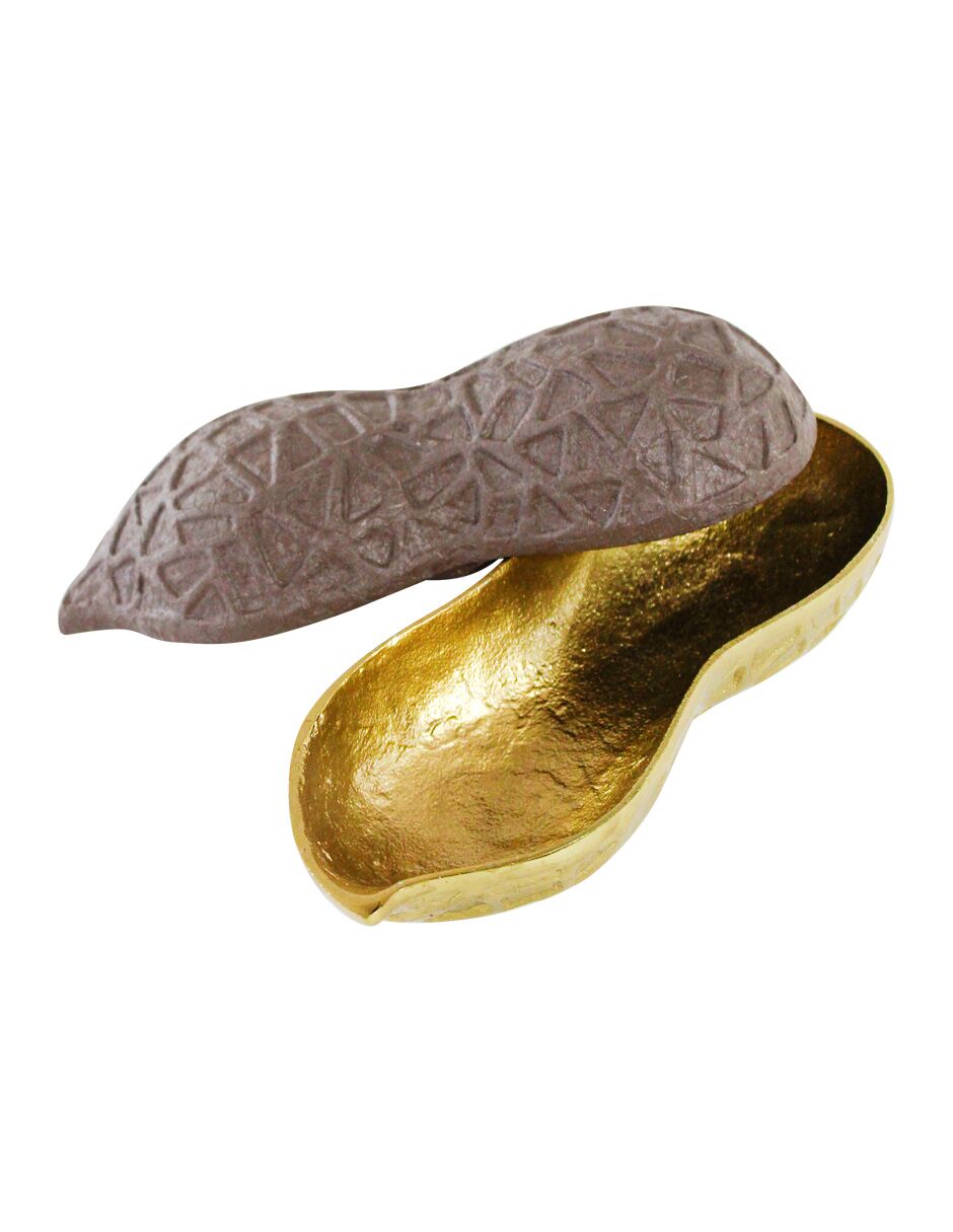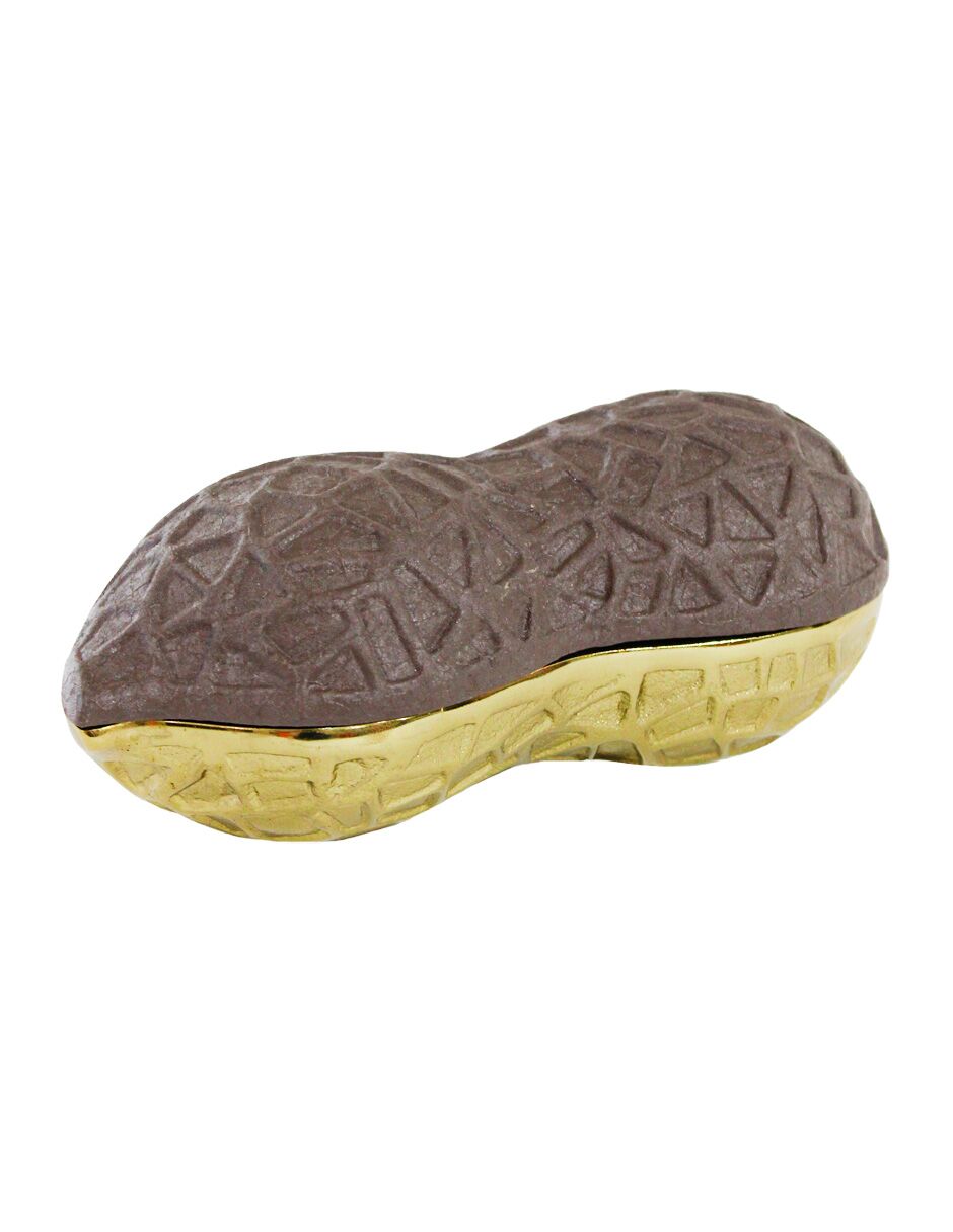 Estuche de metal diseño cacahuate café con dorado de 19x8x7.5cm