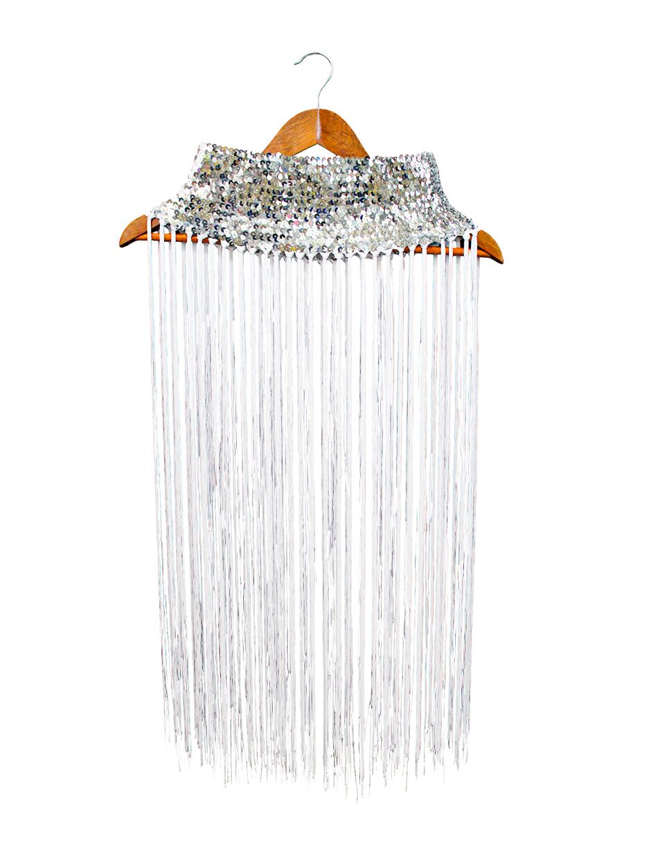 Falda de barbitas plateada con blanco de 30x73x0.1cm