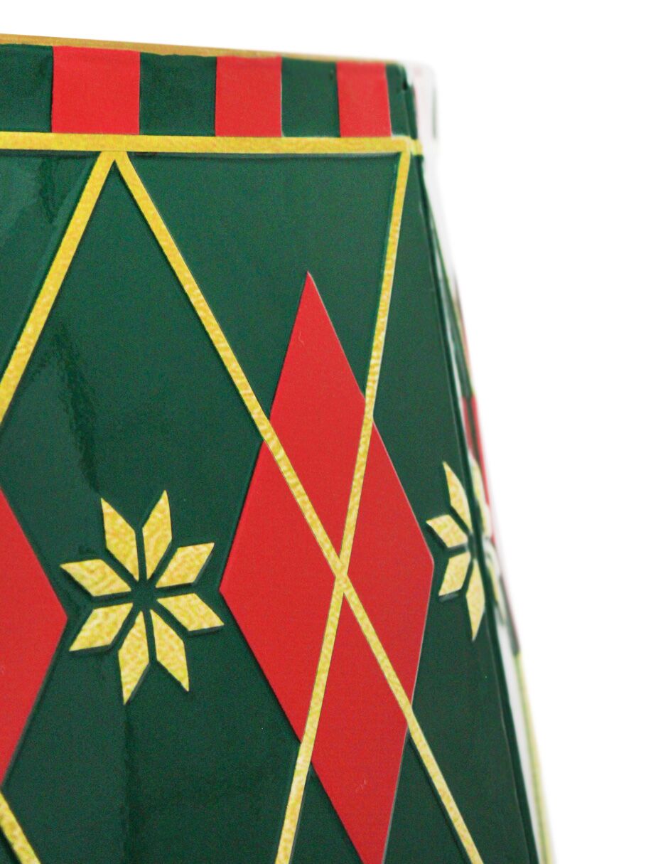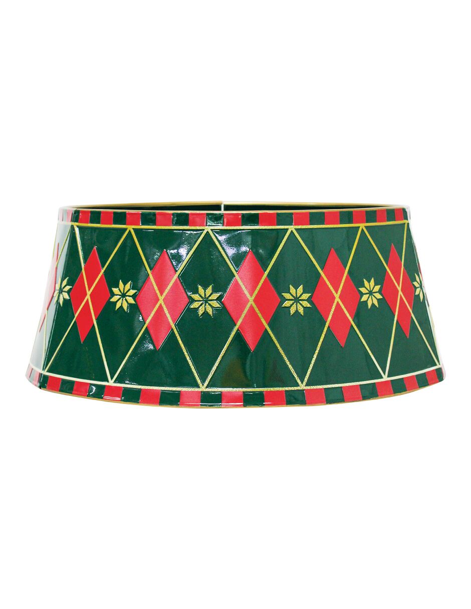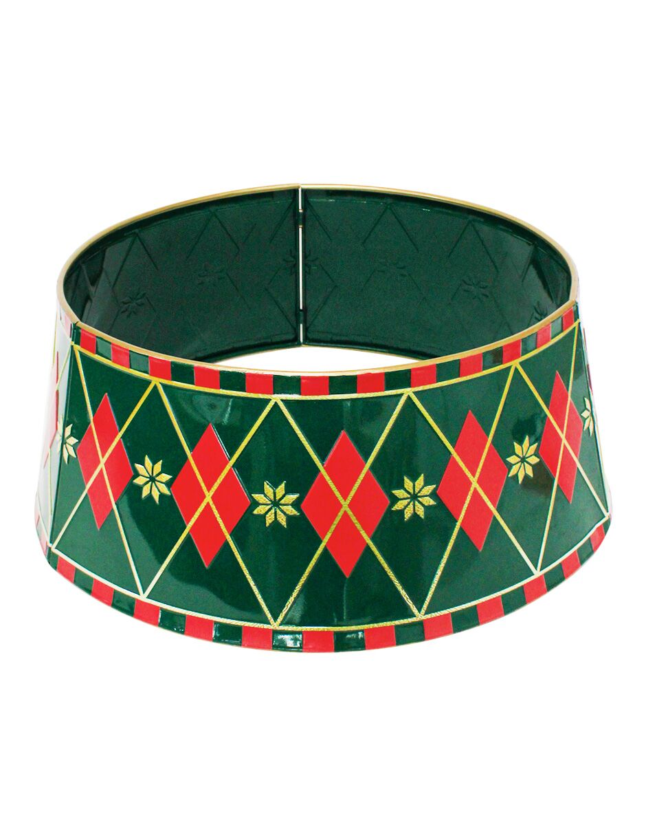 Transforma tu árbol de Navidad con esta elegante falda de metal verde. Su diseño con rombos rojos te hará sentir la alegría y el estilo festivo. Es perfecta para cubrir la base del árbol, aportando un toque de color y sofisticación. Medidas: 66x66x26 cm.