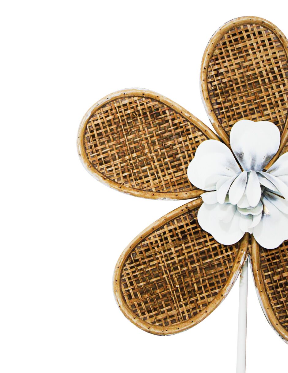 Una hermosa flor de metal para pared. Esta pieza es perfecta para quienes buscan un elemento decorativo que evoque la belleza de la naturaleza y un estilo rústico moderno. Material: metal. Medidas: 26.5 x 3.5 x 86cm.