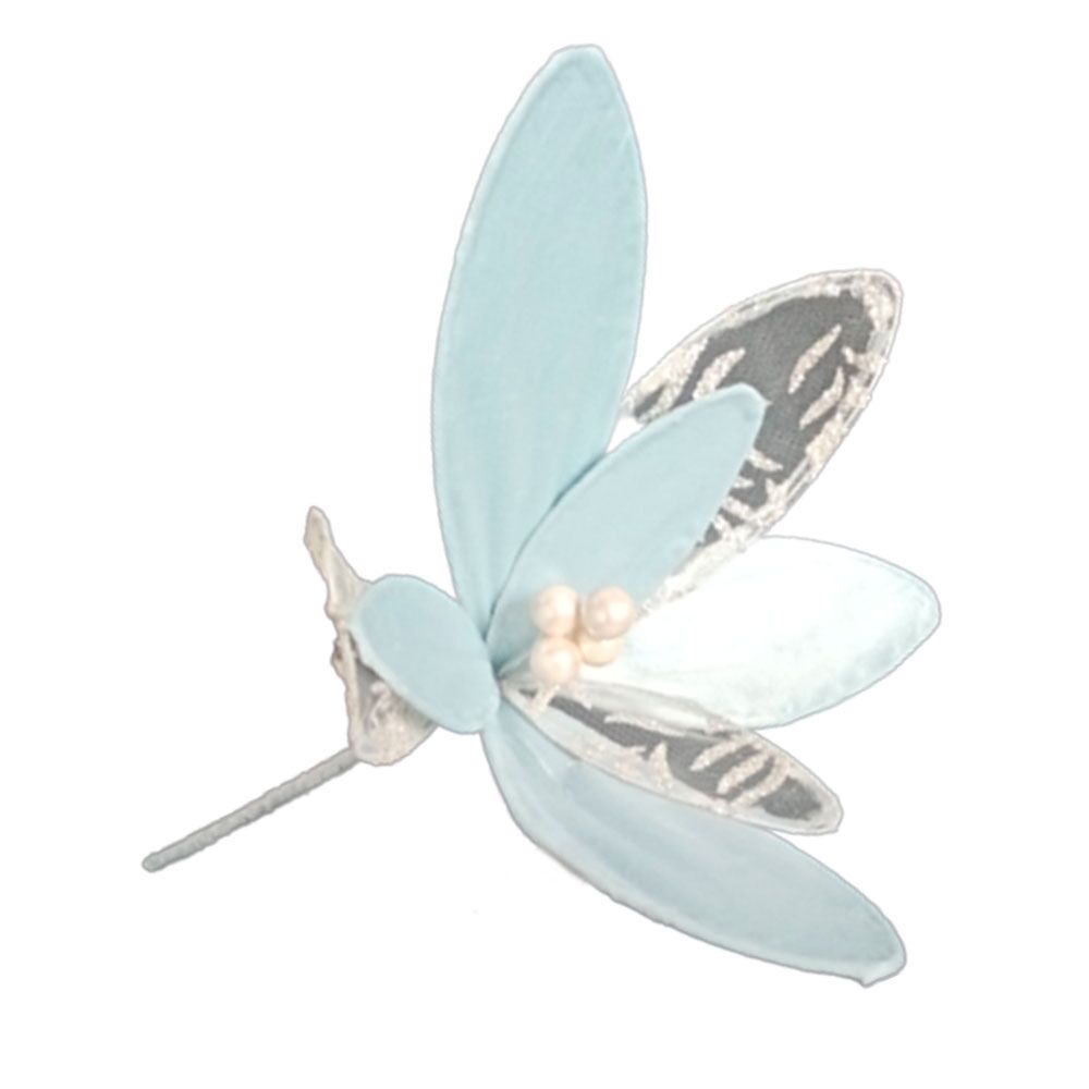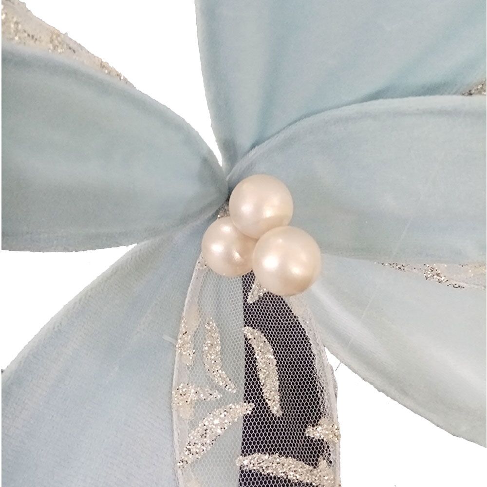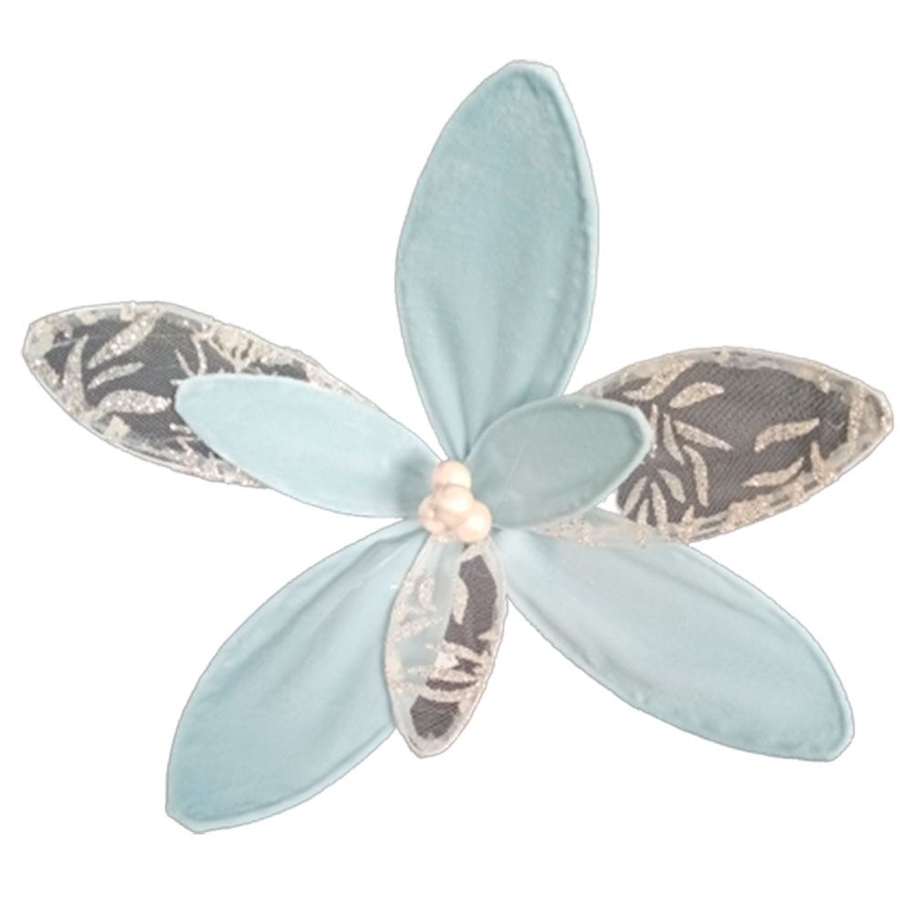 Flor de tela azul con plateado de 37x24x24cm