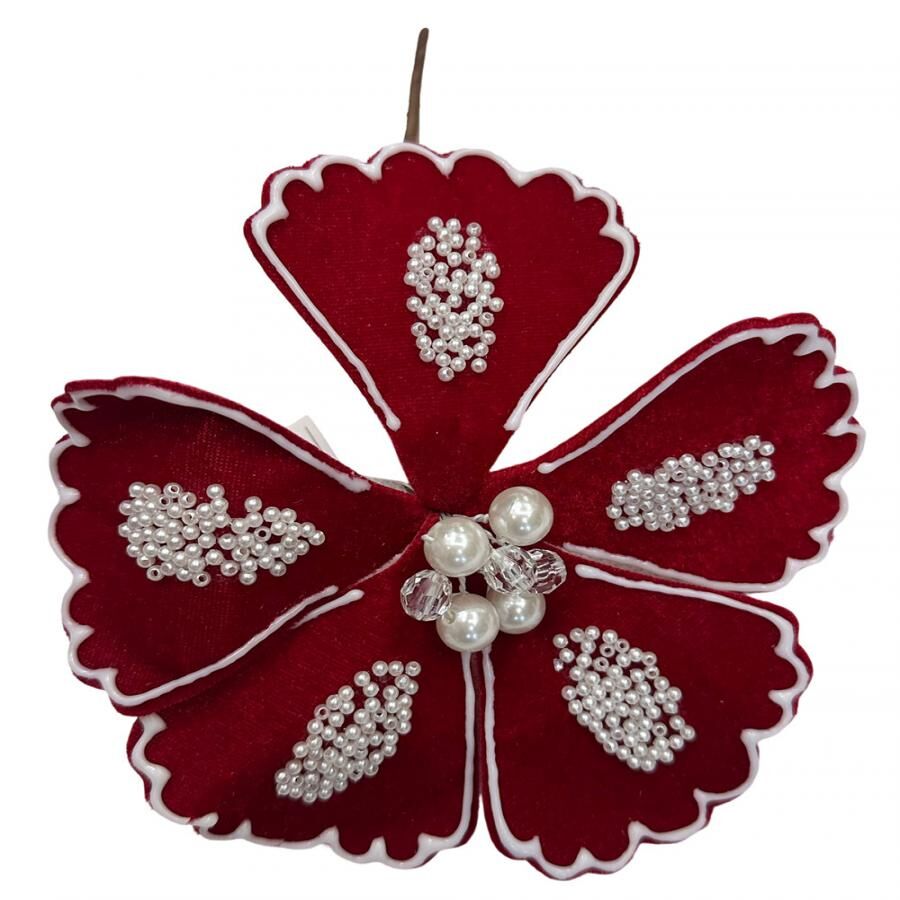 Flor de Navidad Roja con Perlas