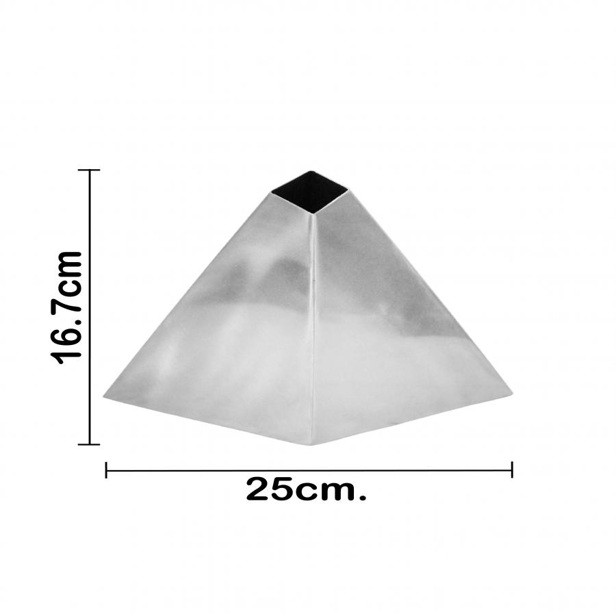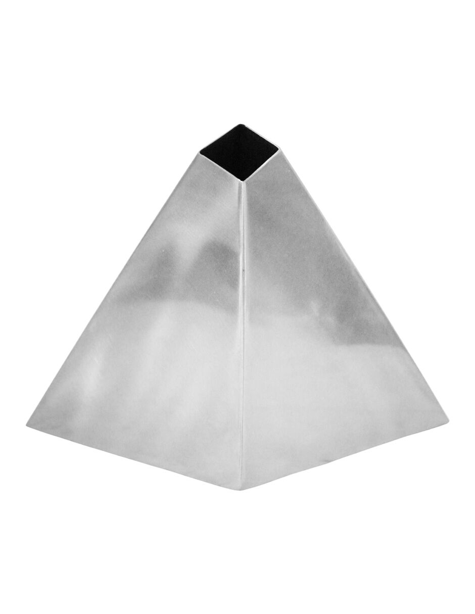 Florero de acero inoxidable diseño piramide plateado mate de 20x25x17cm