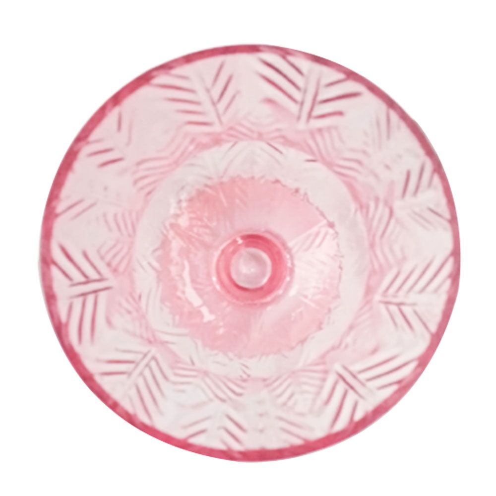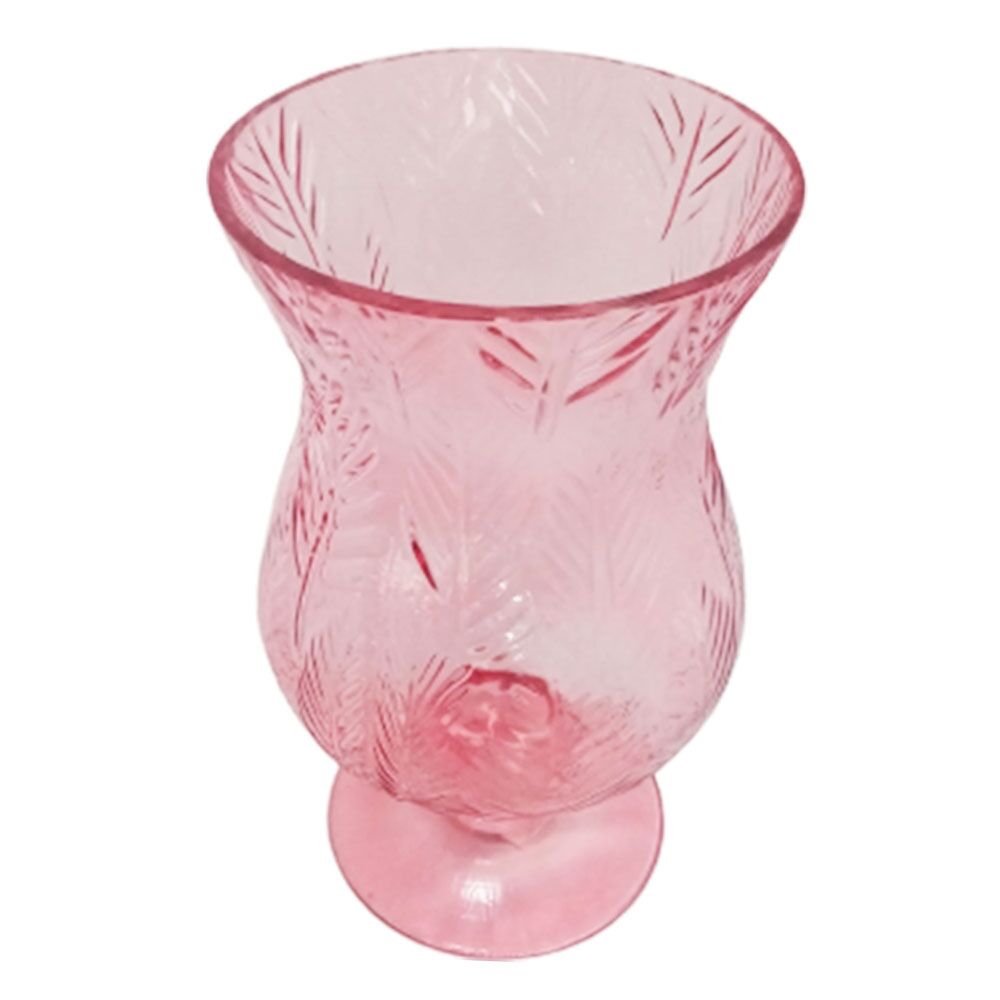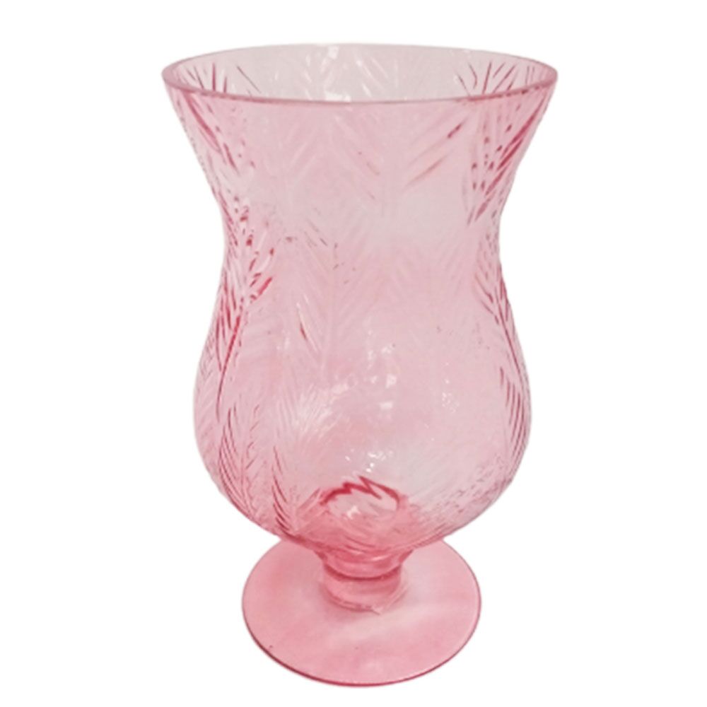 Florero de vidrio rosa diseño copa grabado hojas de 14x12x25cm