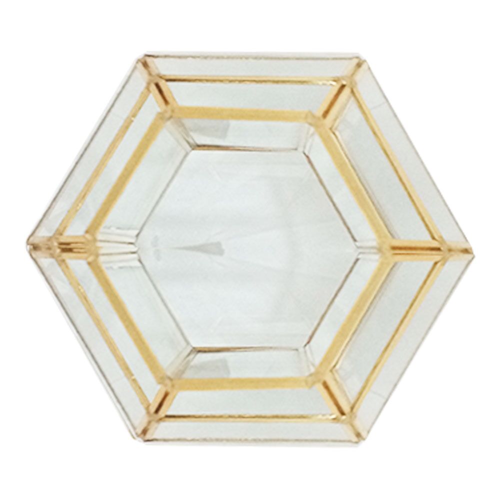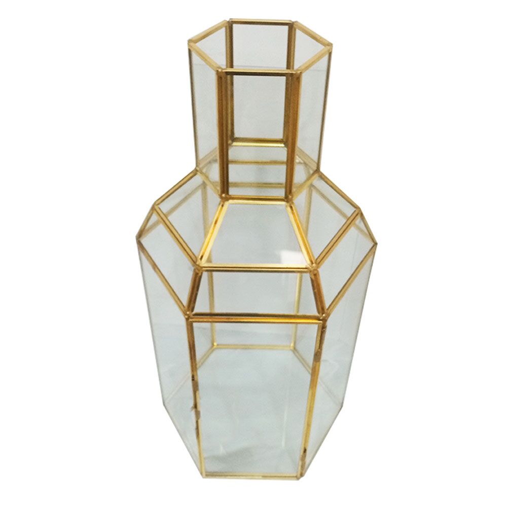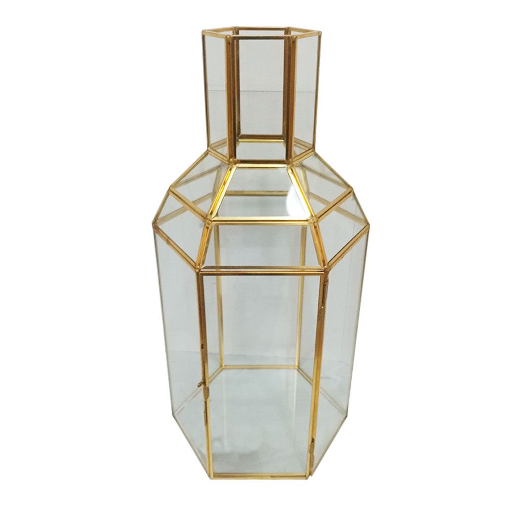 Florero de vidrio transparente diseño estructura dorada de 17x34cm