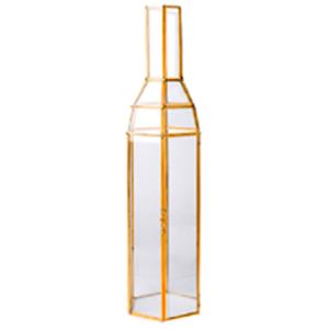 Florero de vidrio transparente diseño estructura dorada de 12.7×48