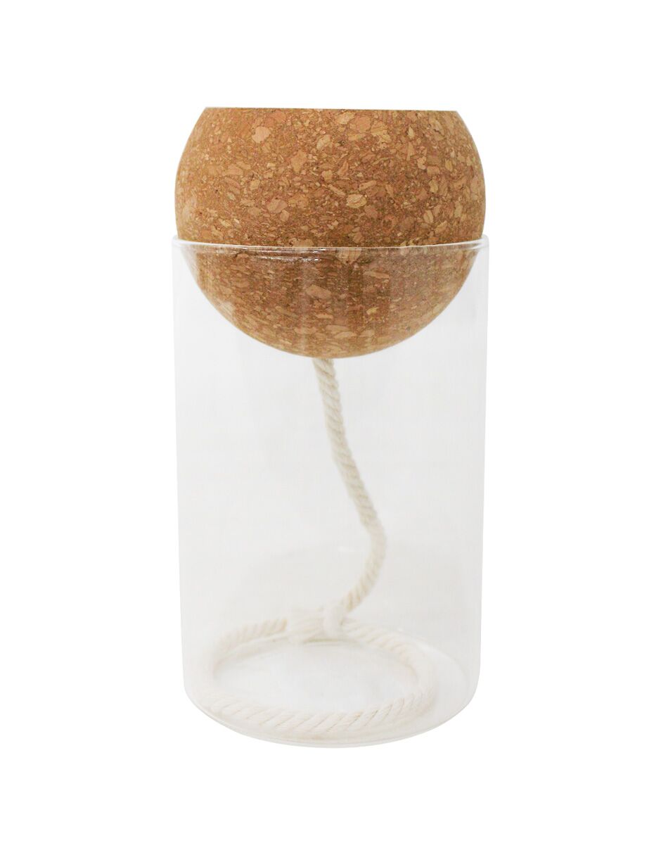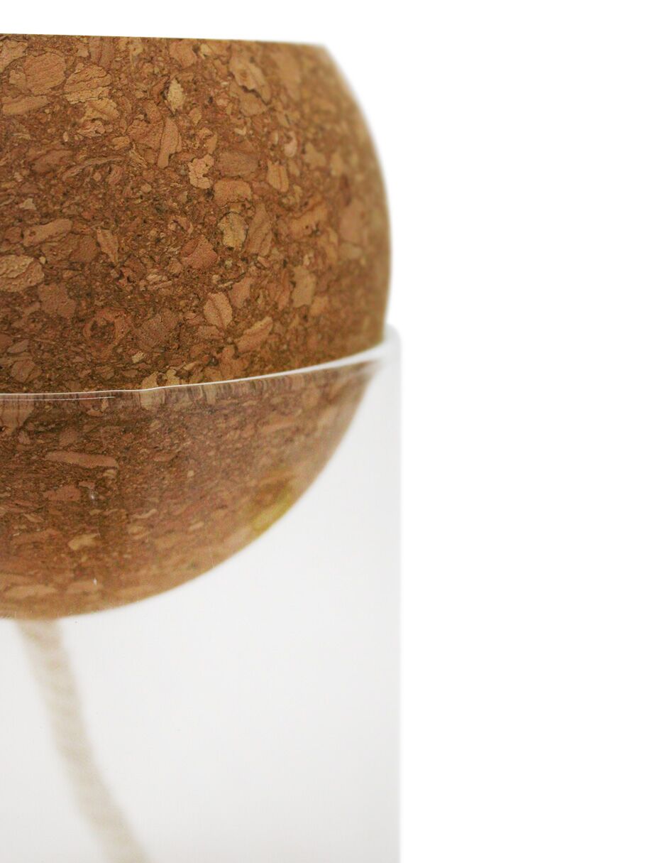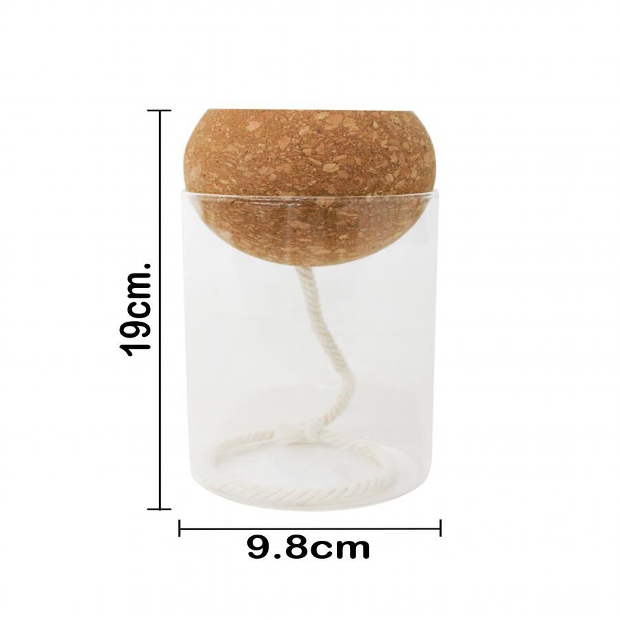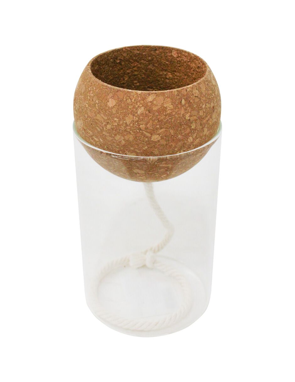 Jarrón hidropónico de cristal y corcho de 10x10x20cm