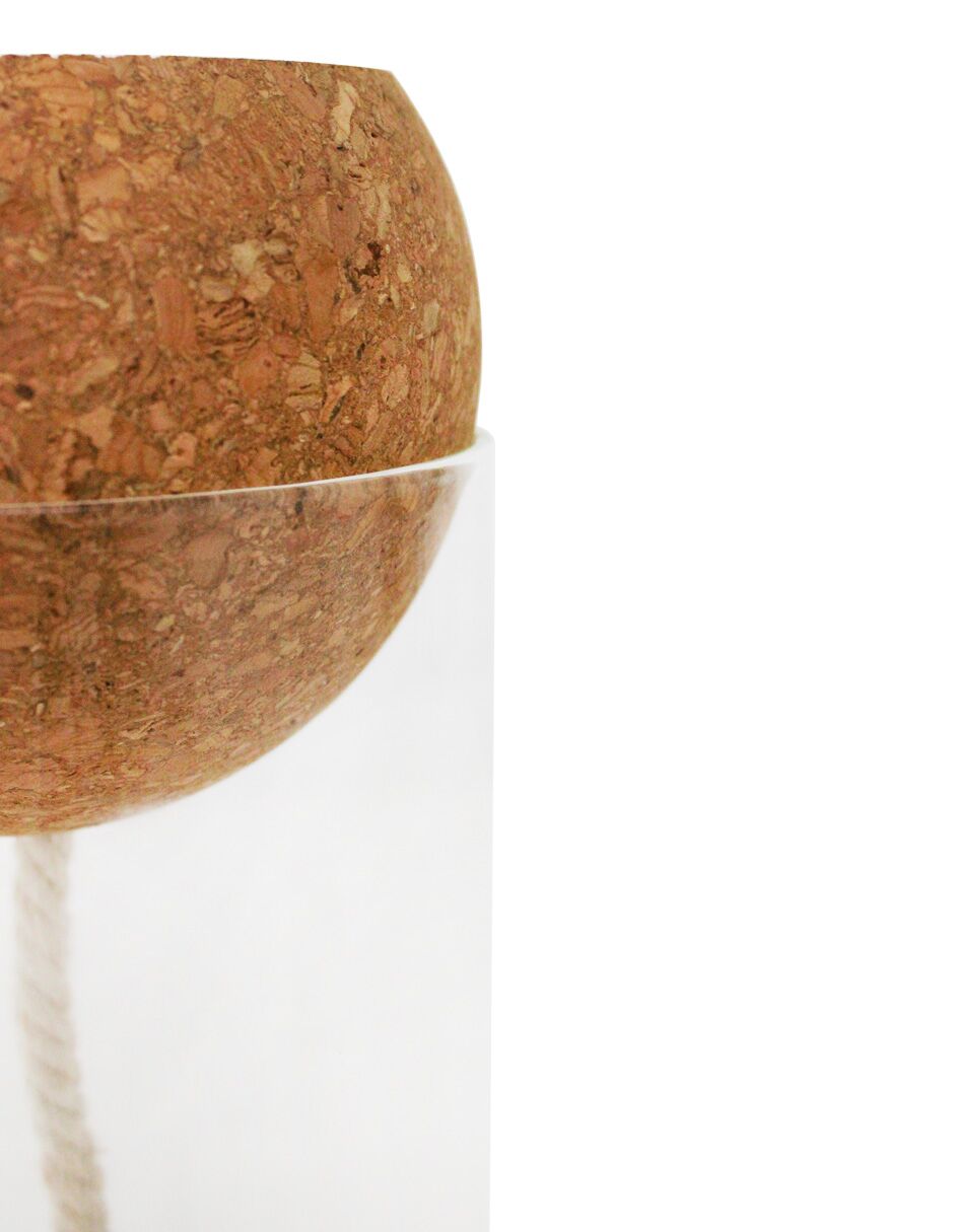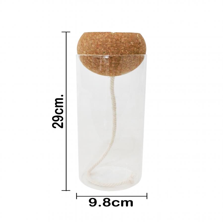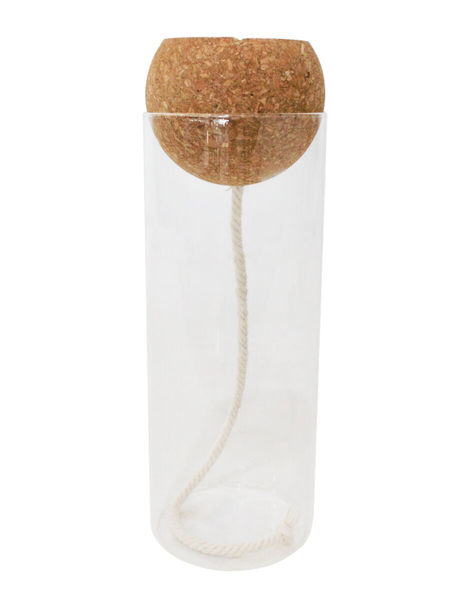 Jarrón hidropónico de cristal y corcho de 10x10x30cm