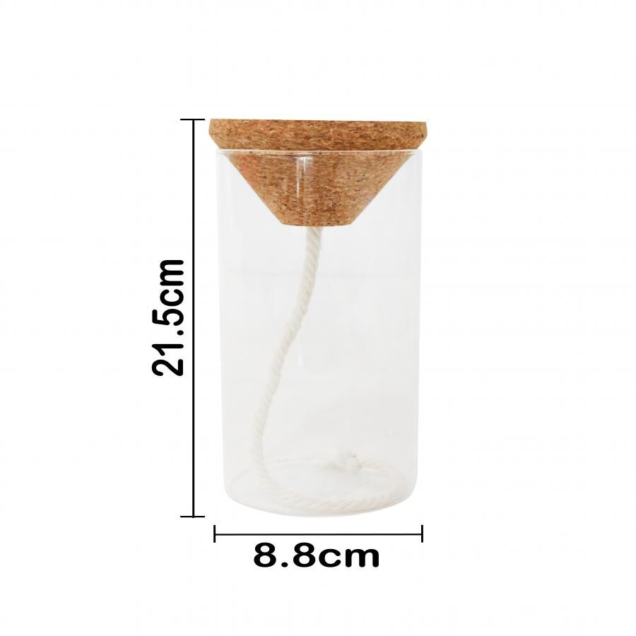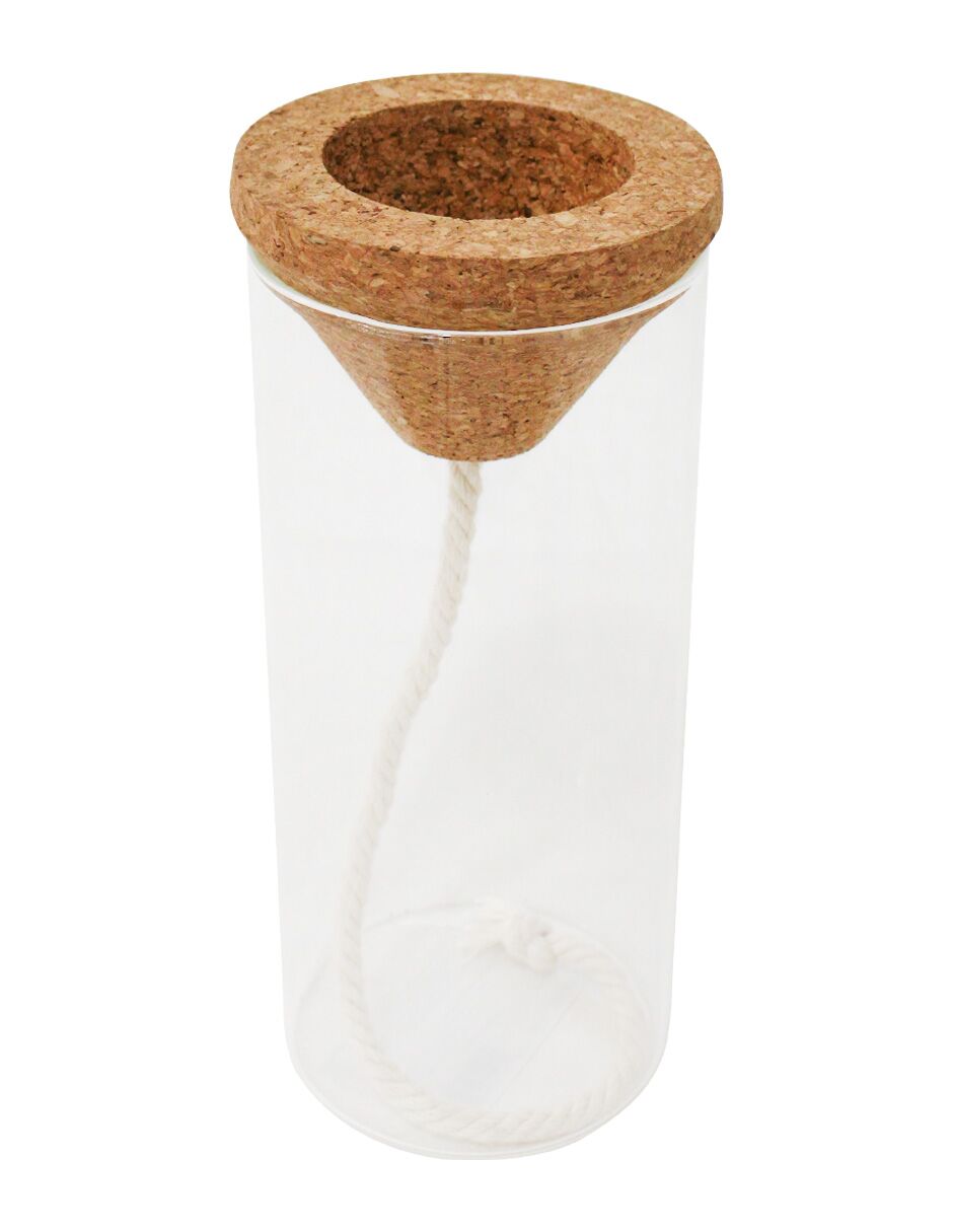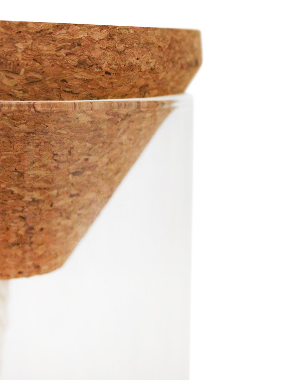 Jarrón hidropónico de cristal y corcho de 9x9x21cm