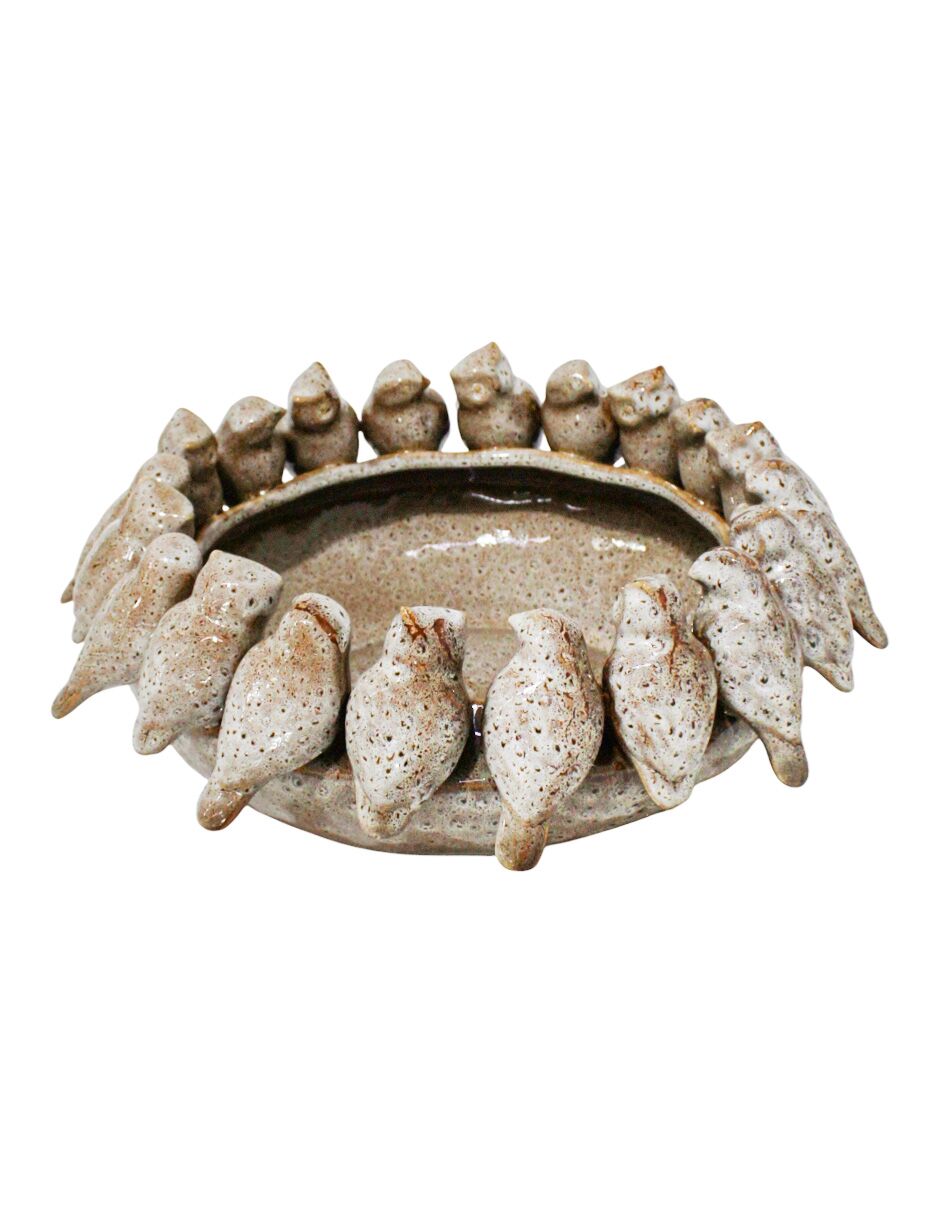 El Frutero Círculo de Aves en Relieve es ideal para quienes buscan una estética natural y llena de distinción. Esta impresionante pieza decorativa destaca por su forma de cuenco bajo y amplio, recubierto por un esmalte reactivo en tonos tierra que evoca la pureza de los materiales orgánicos. Su característica más distintiva es el conjunto de pequeñas aves talladas con gran realismo que rodean el borde, ofreciendo una sofisticación urbana incomparable con un toque artesanal. Además, funciona como el complemento de lujo perfecto para barras de cocina de granito, mesas de comedor de madera sólida o desayunadores que busquen un punto focal de gran riqueza visual. Aporta una nota de diseño vanguardista a cada rincón de su hogar.