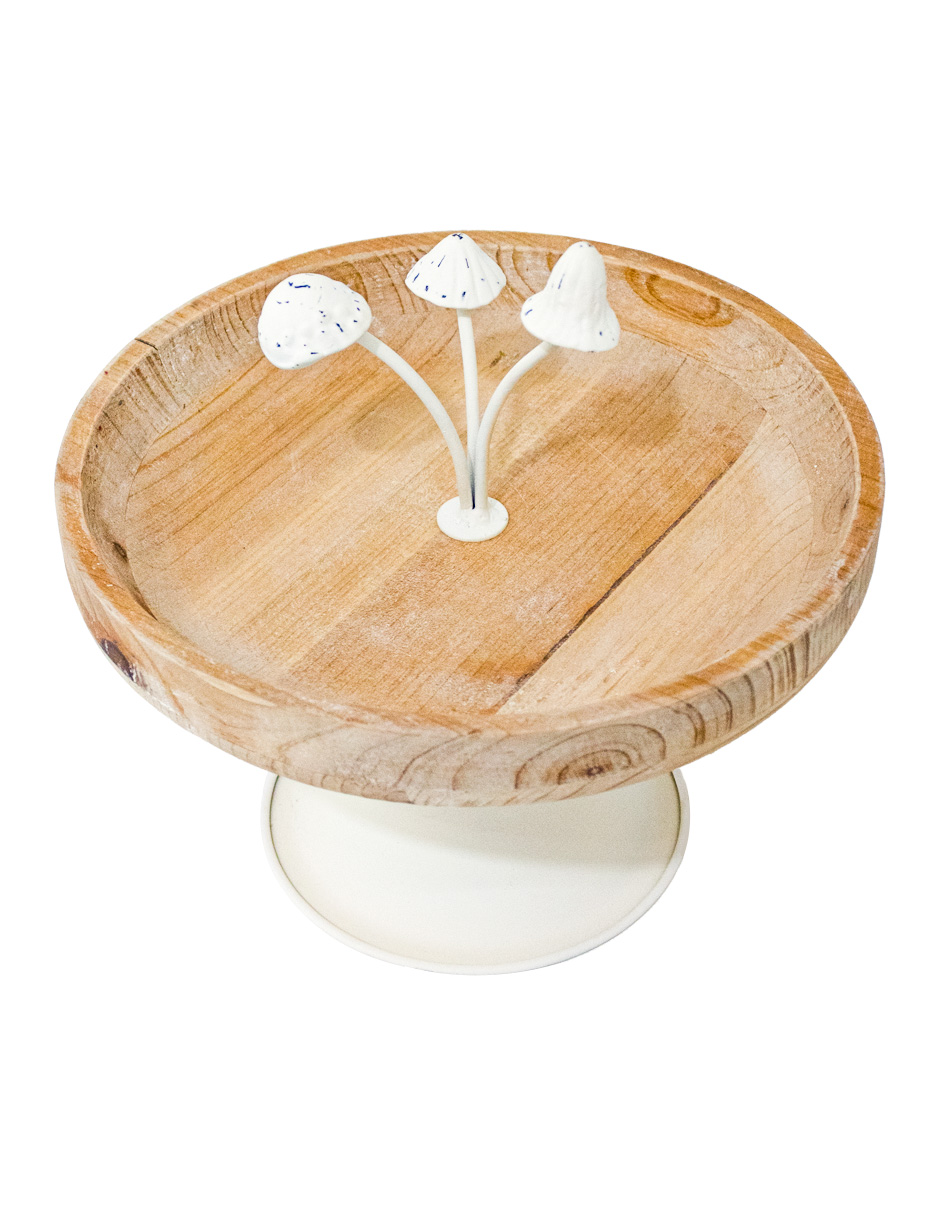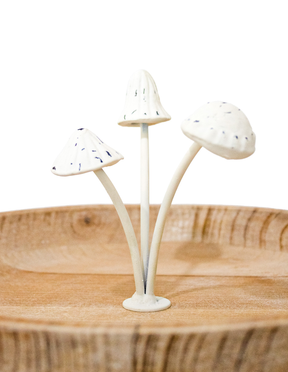 Frutero con un original diseño de hongos blancos. Una pieza moderna y escultórica que funciona como frutero o como objeto de decoración vanguardista. El material es porcelana.