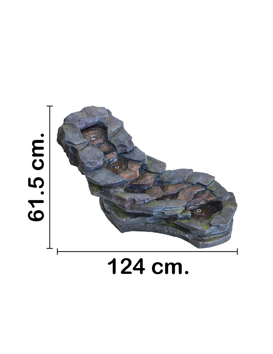 Fuente de agua diseño piedras con cascada con luz de 124x60x61.5cm