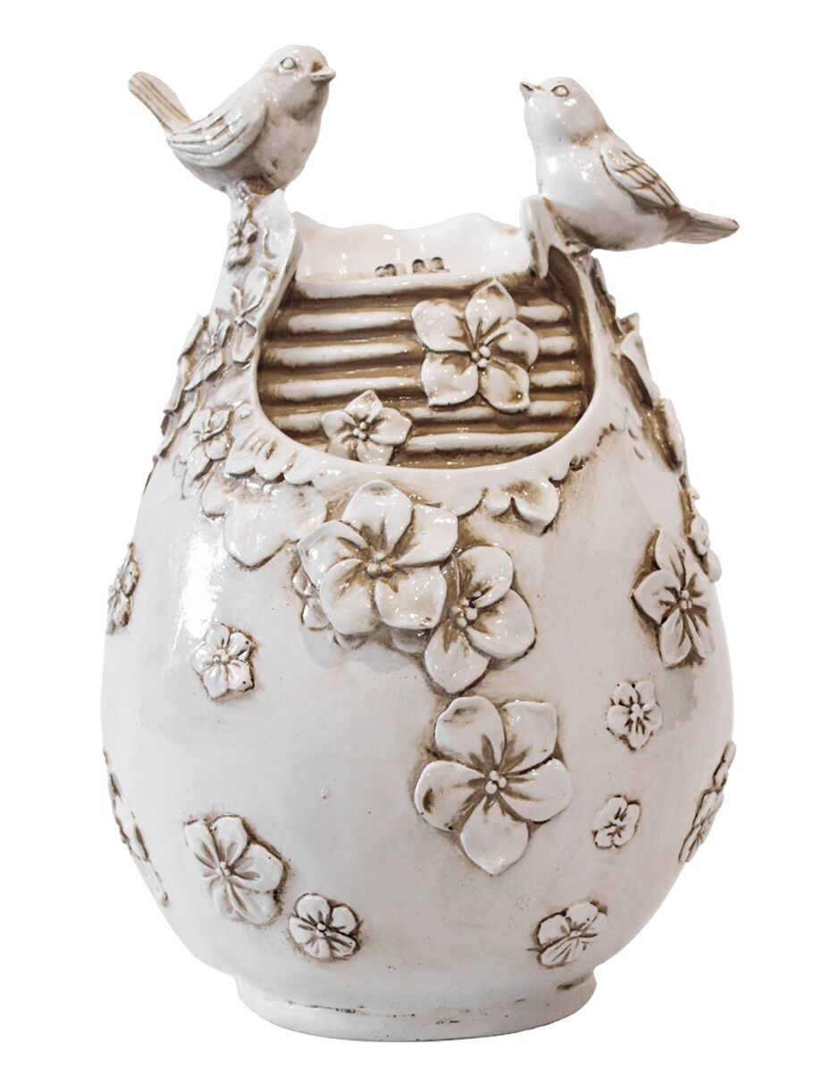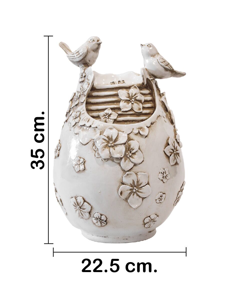 Fuente de pájaros en maceta de poliresina con LED de 24.5×24.5×36.5cm