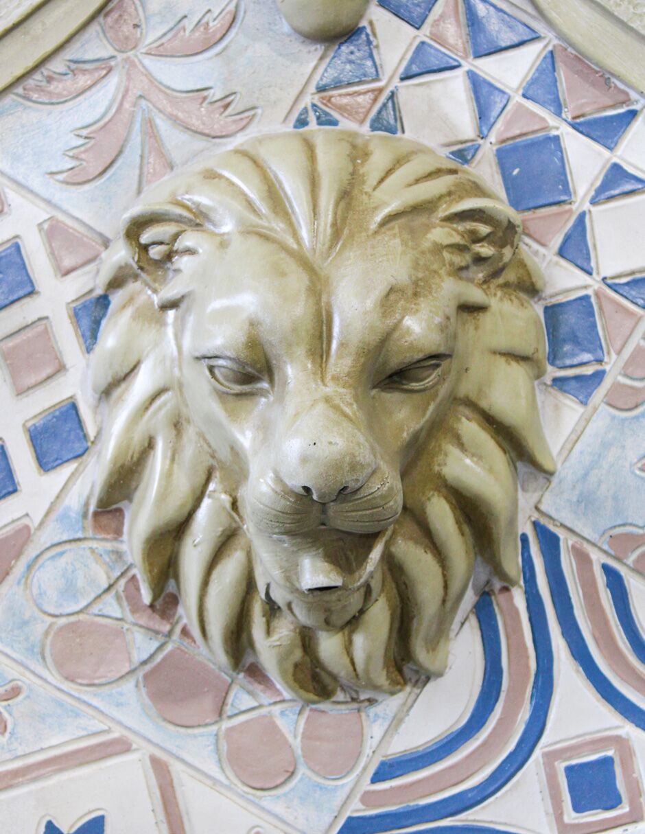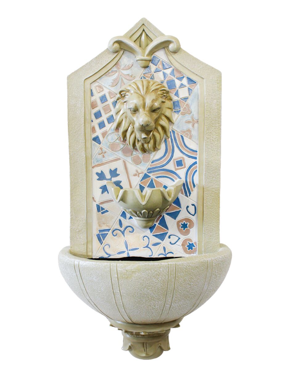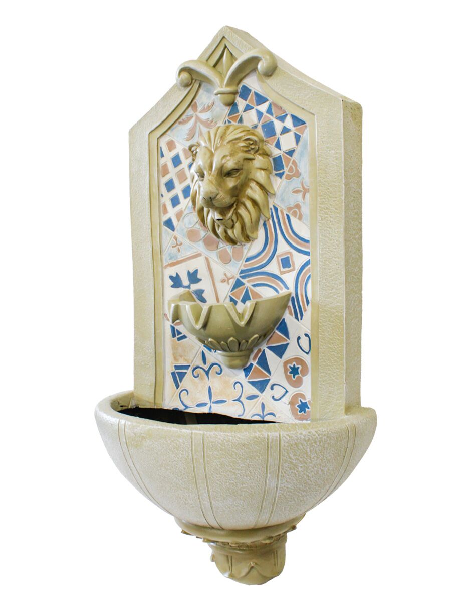 Fuente de pared con cabeza de león de poliresina con mosaico de 40.5×23.5x82cm