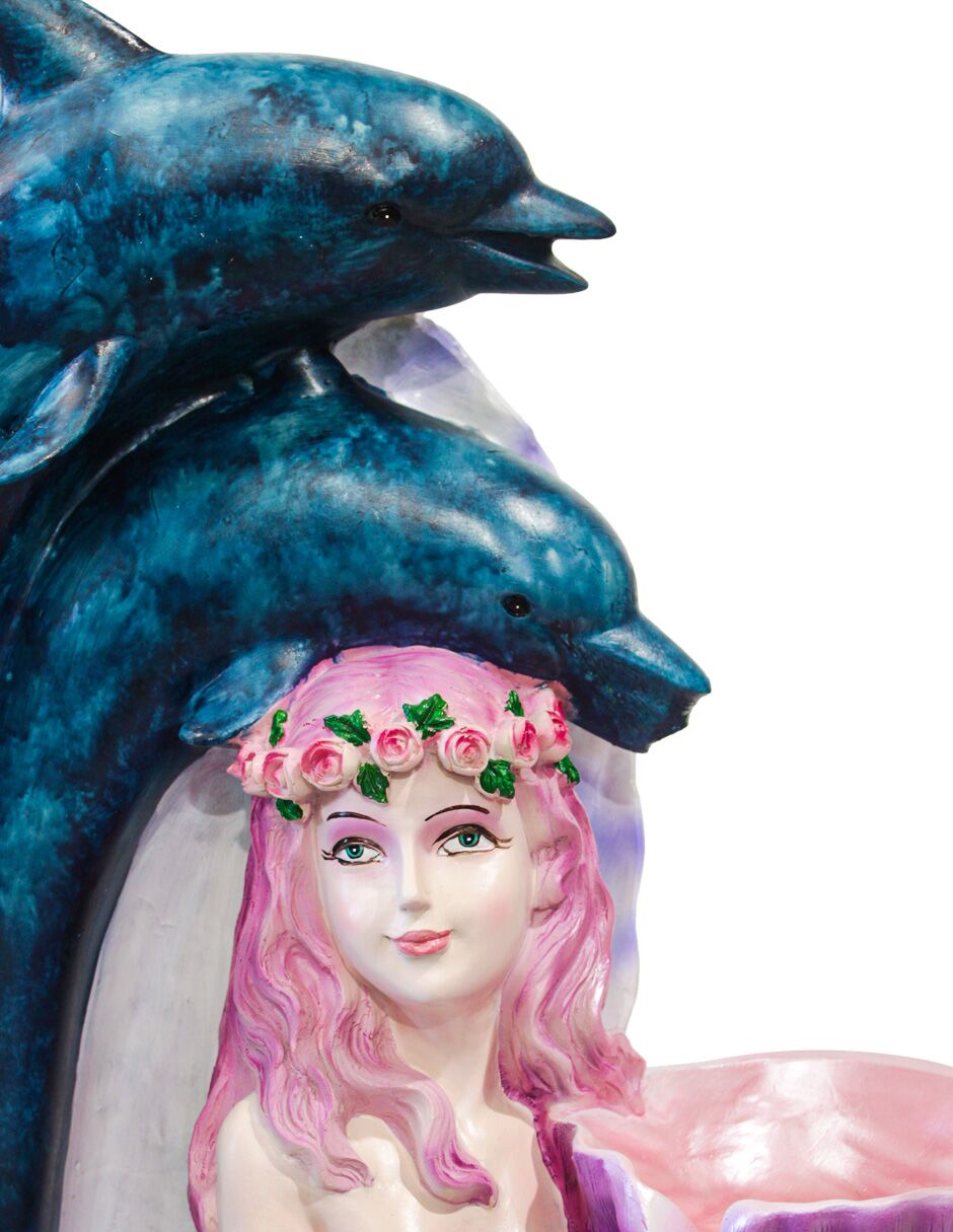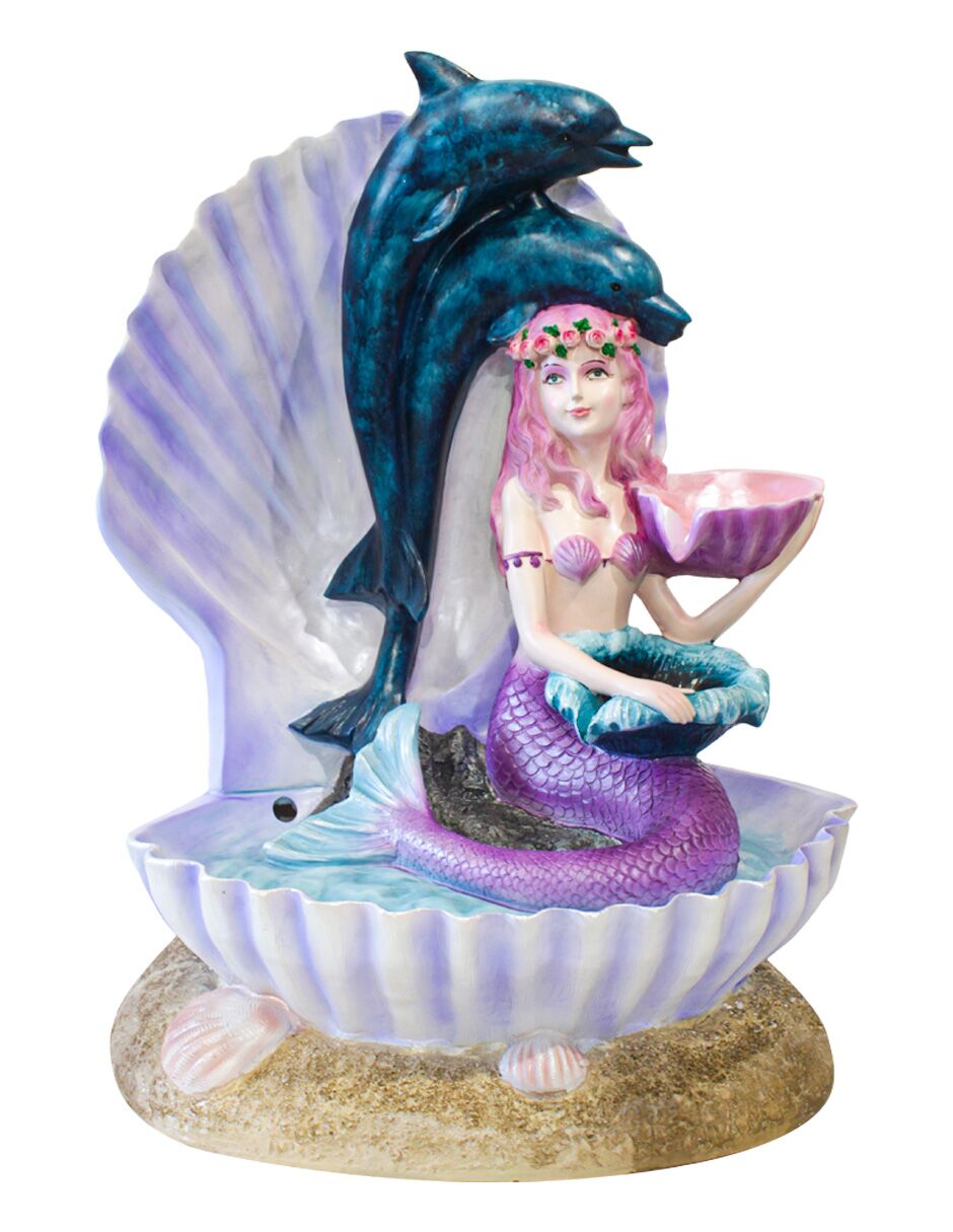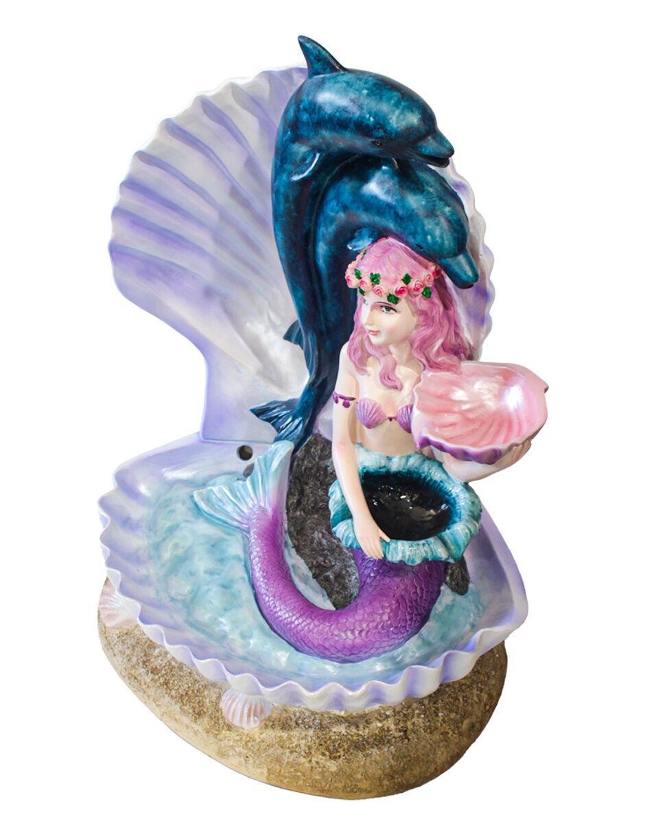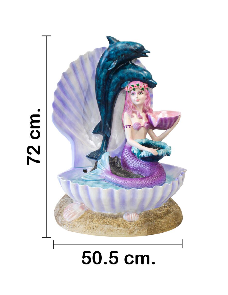 Fuente de poliresina diseño sirena con concha de mar y delfines de 54.5x48x72cm