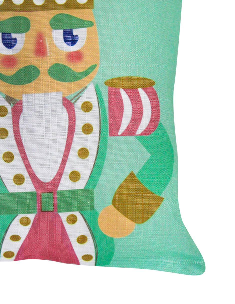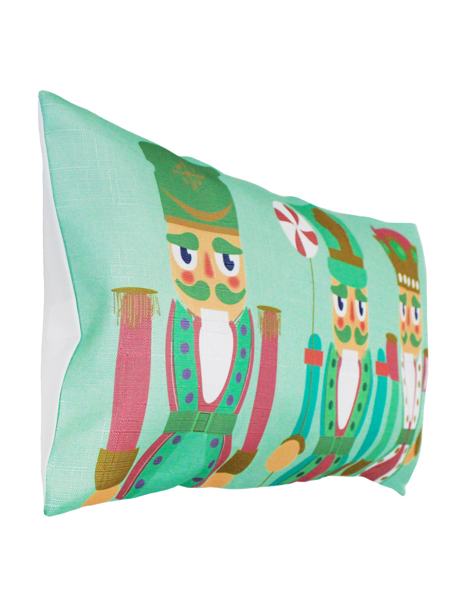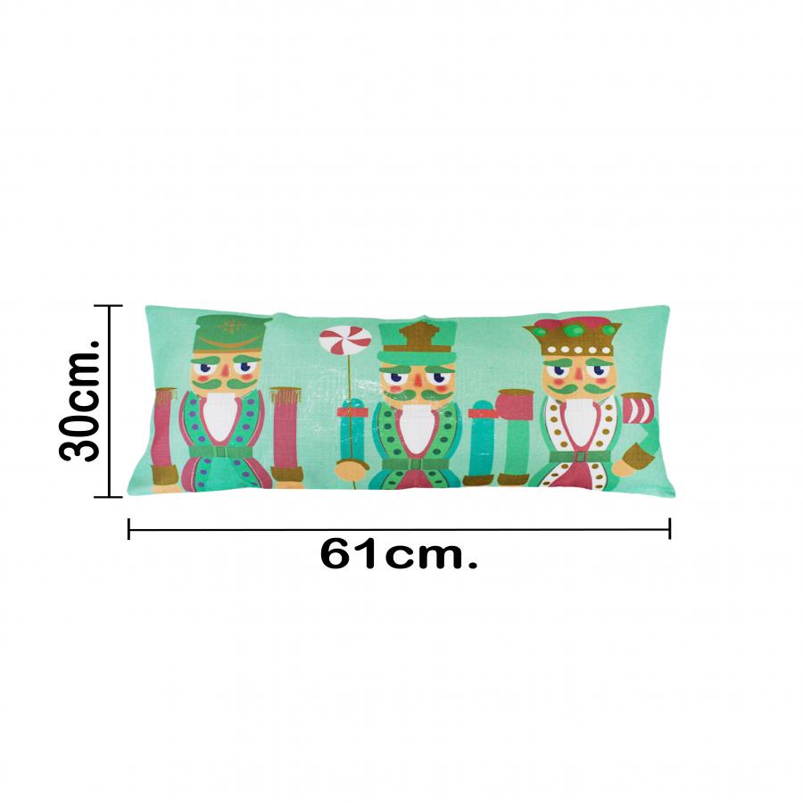 Funda para cojín con el clásico y festivo diseño de 3 cascanueces. Esta pieza es ideal para darle un toque tradicional y elegante a tu sala o habitación, transportándote a un cuento de hadas y llenando tu hogar de la magia navideña que tanto te gusta. Material: poliéster. Medidas: 30x62cm.