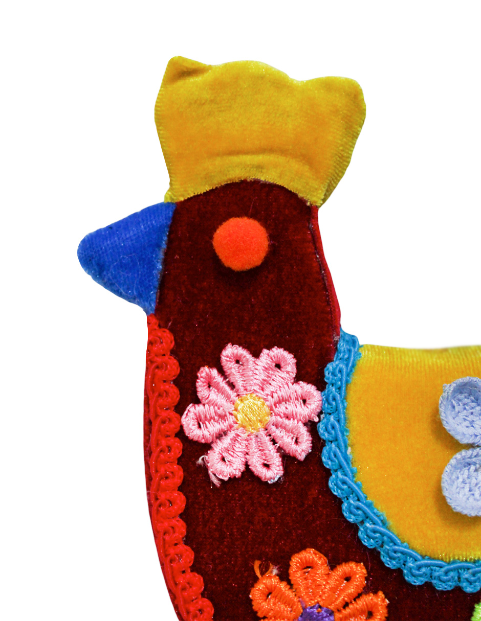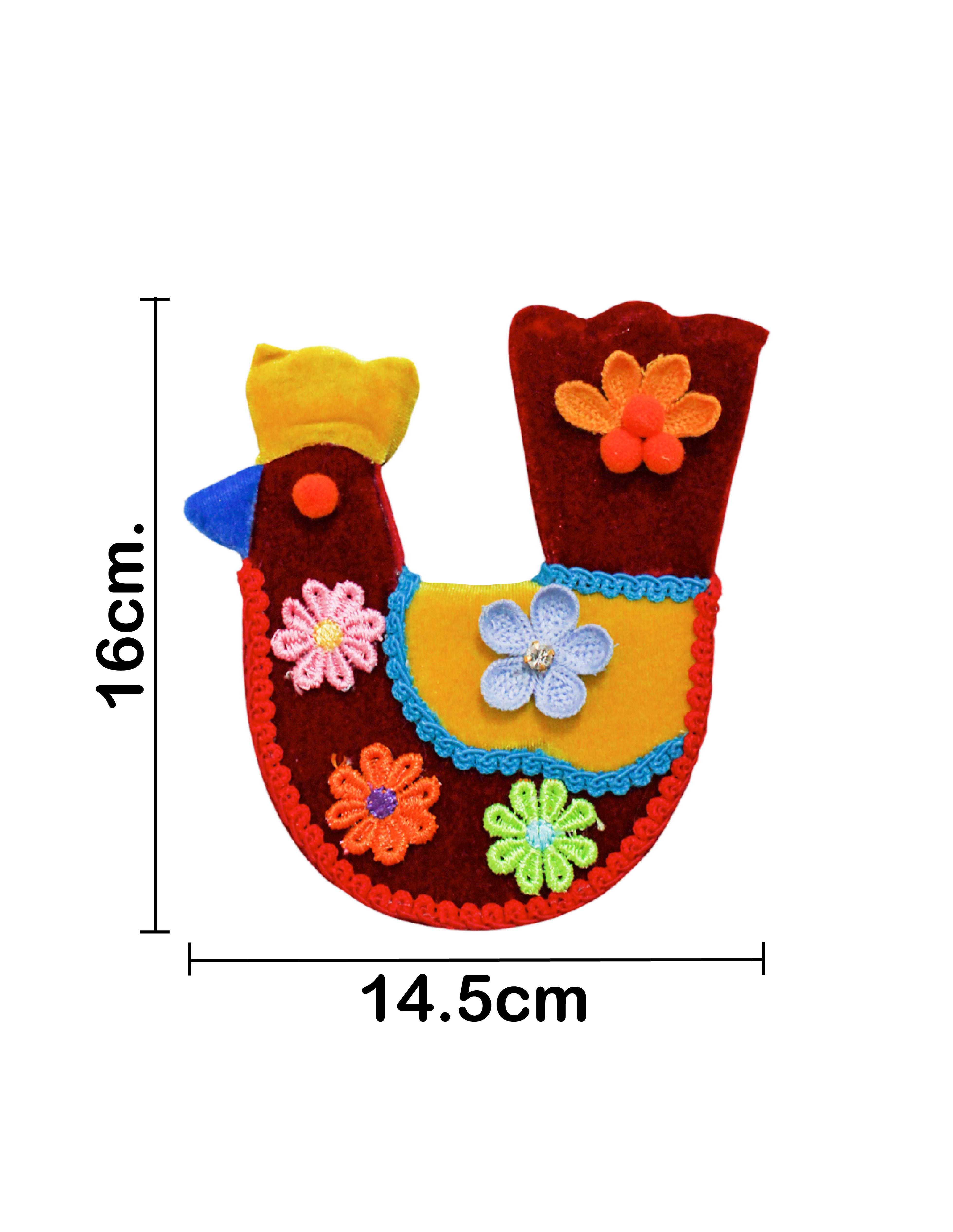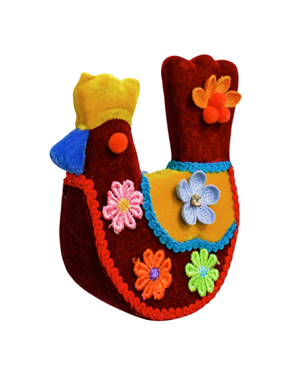 Aporta un toque de campo a tu hogar con esta gallina decorativa roja con flores y cresta amarilla. Su diseño te hará sentir la pasión y la vitalidad de la naturaleza. Medidas: 13x7x16 cm.