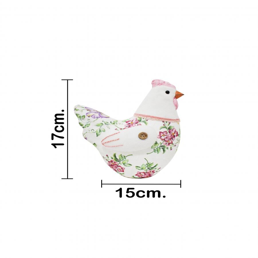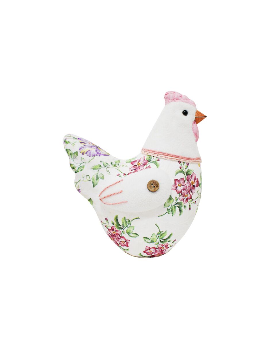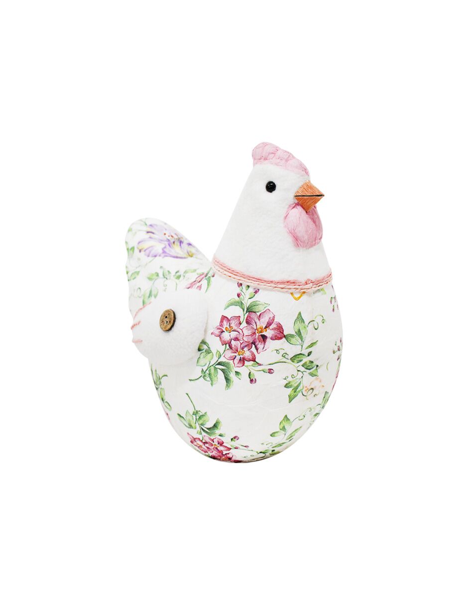 Gallina forrada de papel con flores rosa de 15x11x17cm