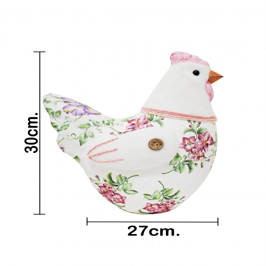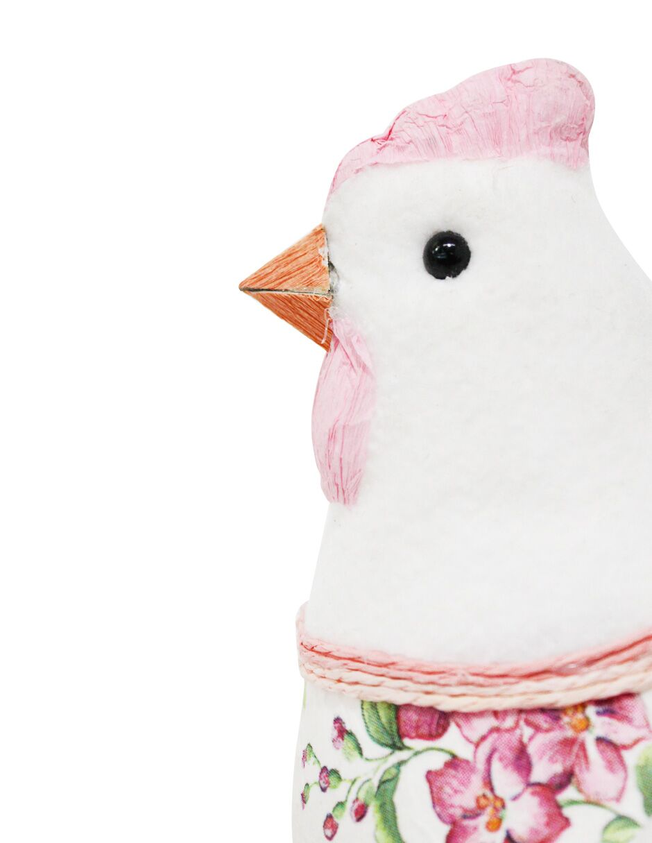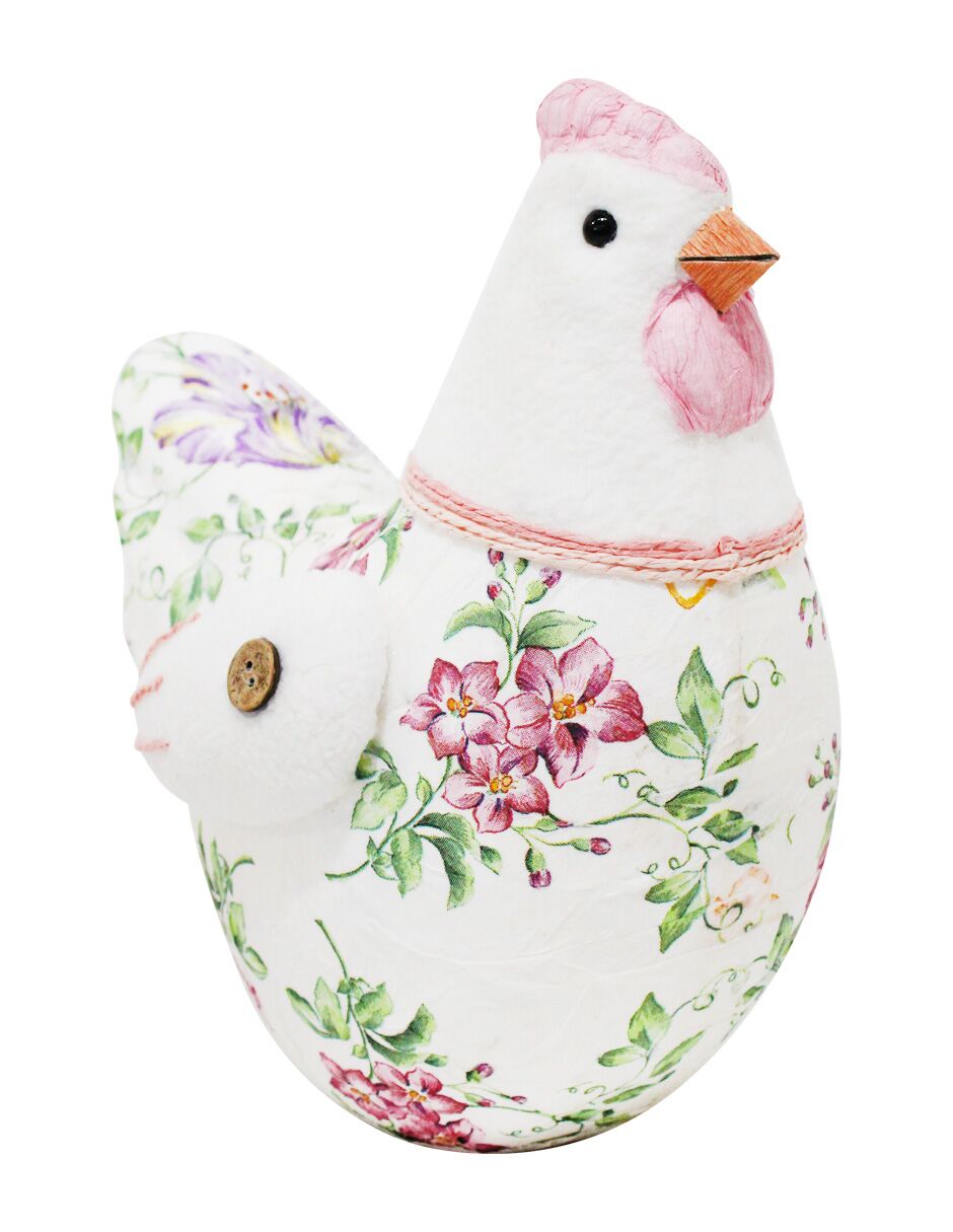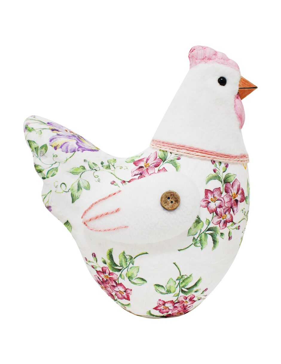 Gallina forrada de papel con flores rosa de 27x18x30cm