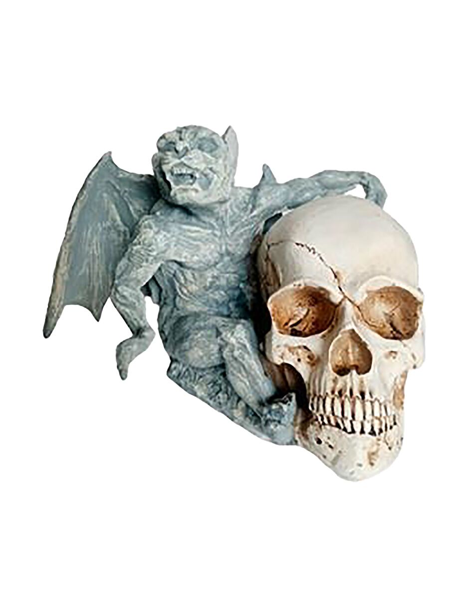 Un toque de misterio y estilo para tu hogar. Esta figura de gárgola de poliresina es la pieza perfecta para añadir un aire de originalidad y encanto a tu decoración de temporada. Con un diseño detallado de una gárgola sobre un cráneo, y un tamaño de 27×22.5×18.5cm, su figura crea un ambiente lleno de vida, ideal para una repisa, escritorio o cualquier rincón temático, y sorprenderá a tus invitados con su diseño único.