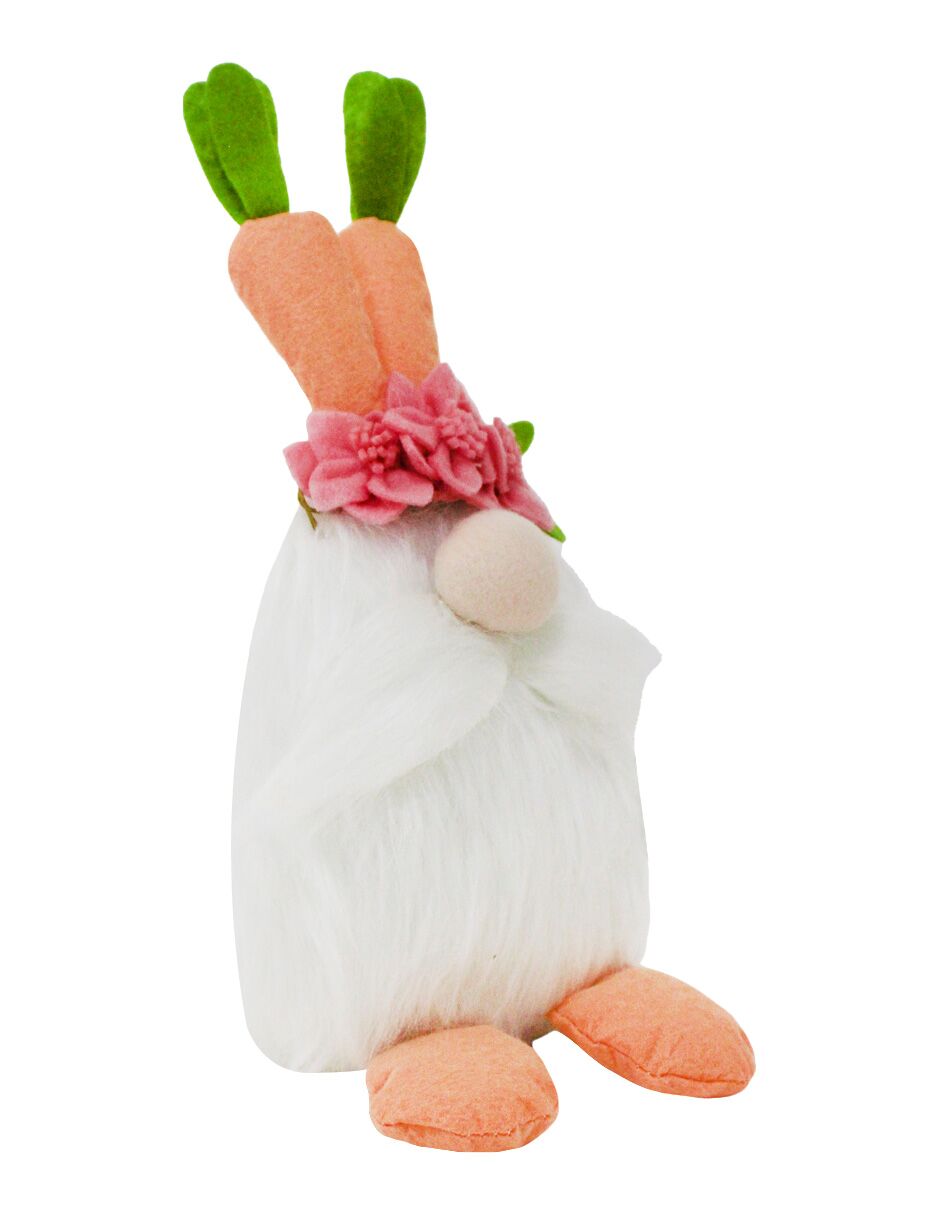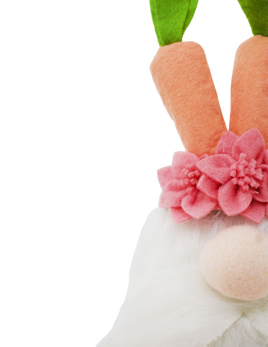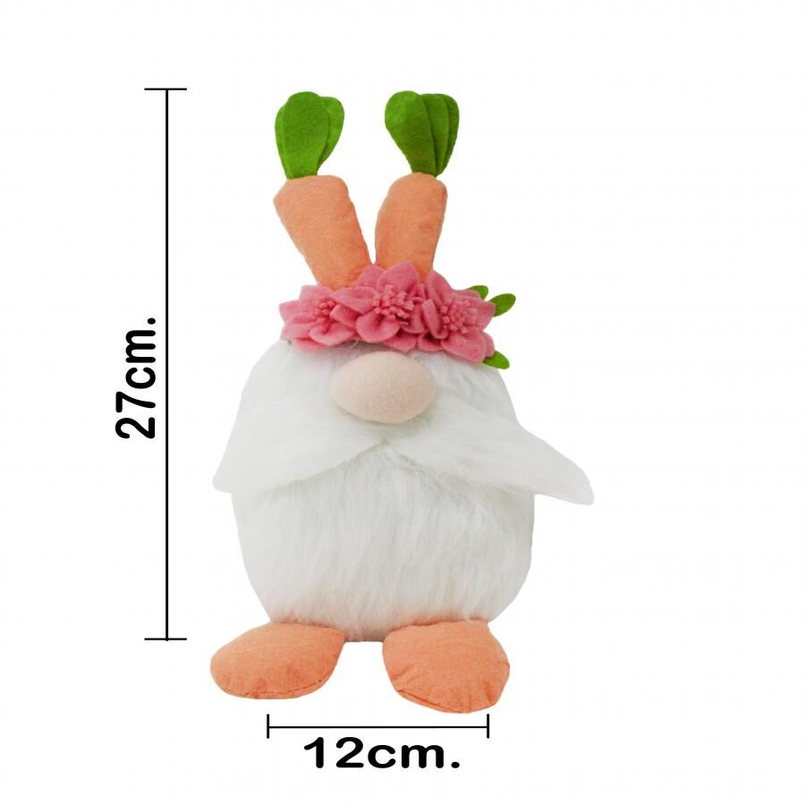 Gnomo de tela blanca con flores rosas y zanahorias naranjas de 14x14x27cm