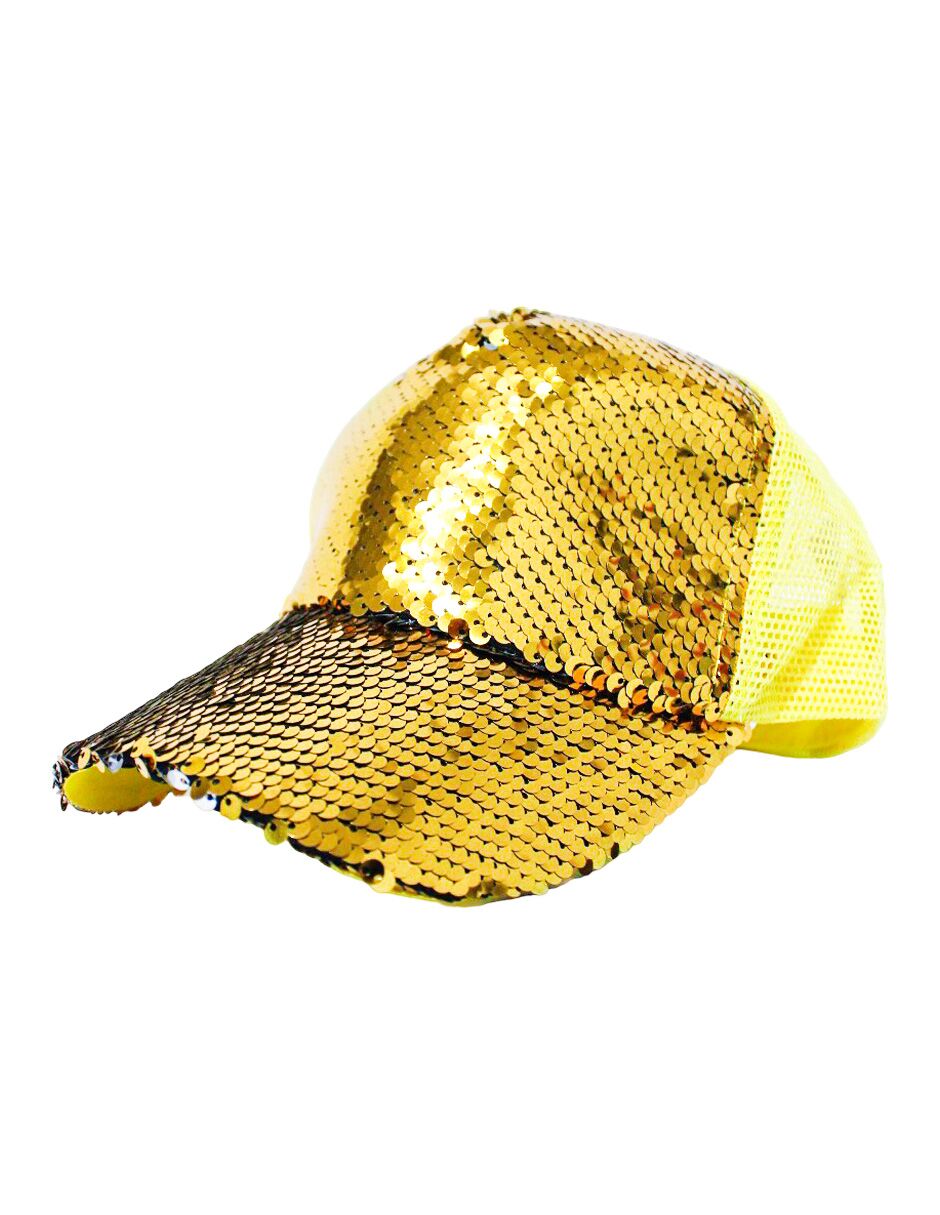 Gorra de lentejuela dorada con amarillo