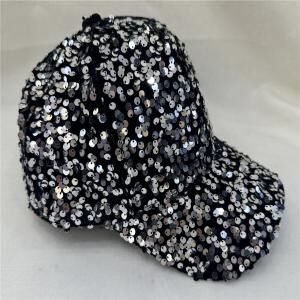 Gorra negra con plata y lentejuelas de 20x27x12cm
