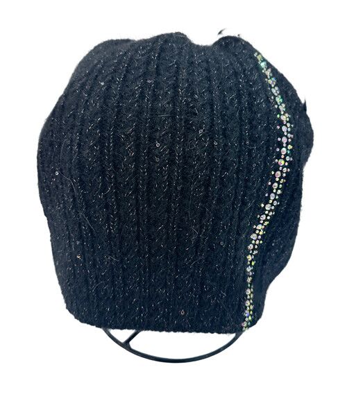 Dale un toque de glamour sutil y brillo sofisticado a tu look de invierno con esta cautivadora gorra tejida. Su diseño en color negro se complementa con detalles de pedrería que atrapan la luz, ideal para inyectar elegancia, calidez y un aire chic a tus días fríos. Es el accesorio perfecto para un estilo casual pero distinguido. Material: Tejido (Lana/Acrílico) con Pedrería. Medidas: 26 x 26 x 22 cm.