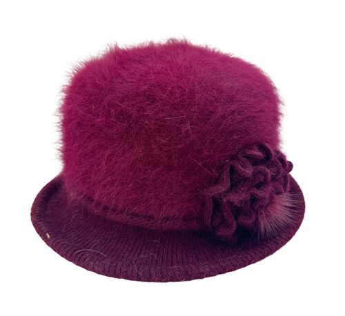 Abriga tu cabeza con el glamour vintage y la calidez suntuosa de este cautivador gorro estilo cloche. Su textura de peluche en tono borgoña y su delicada flor tejida de angora evocan una elegancia clásica, ideal para inyectar sofisticación, calidez y un aire romántico a tus outfits de invierno. Es el accesorio perfecto para sentirte distinguida y protegida del frío. Material: Peluche y Angora tejida. Medidas: 28 x 28 x 14 cm.
