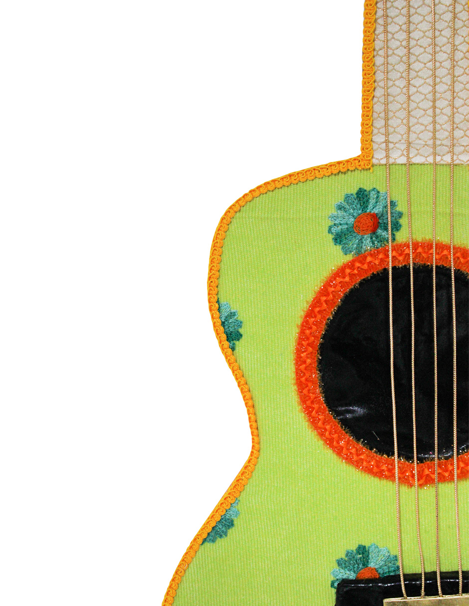 Llena tu hogar de alegría con esta guitarra amarilla con flores. Su diseño te hará sentir la vitalidad y la frescura. Medidas: 32x7x70 cm.