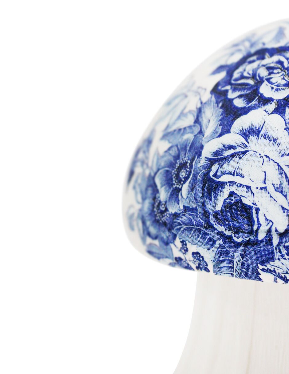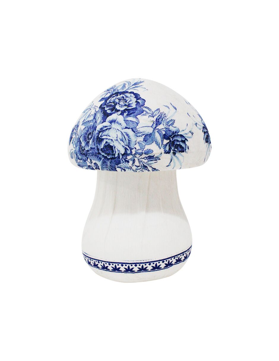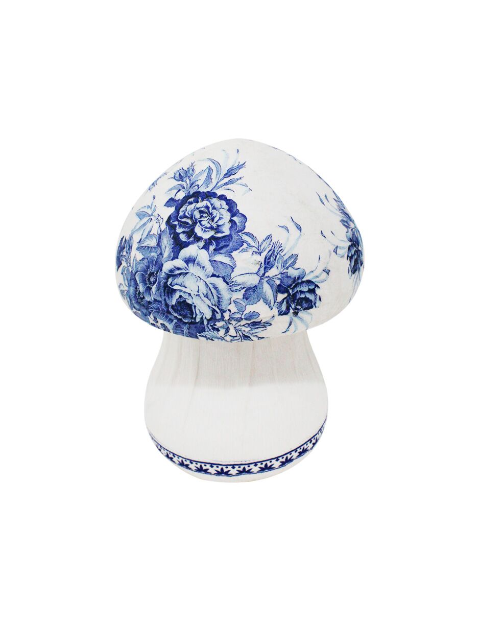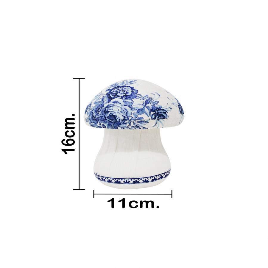 Hongo forrado de papel con flores azul con blanco de 11x11x16cm