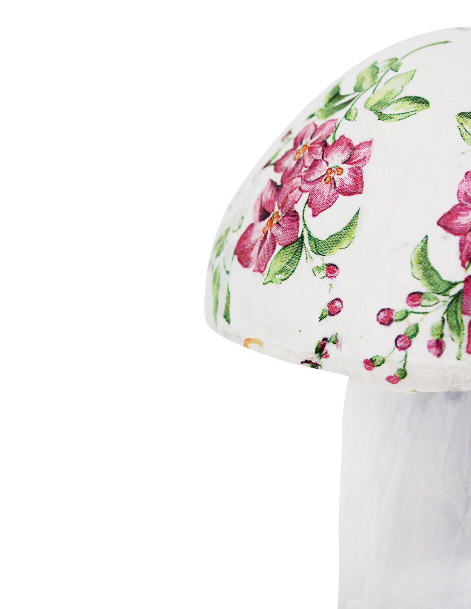 Hongo forrado de papel con flores azul de 15x15x33cm
