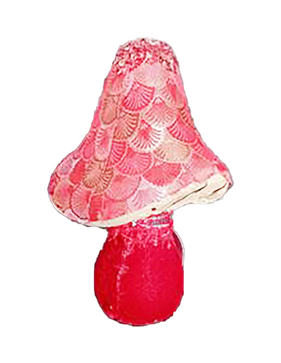 Hongo forrado de tela roja con chaquiras de 17x17x26cm
