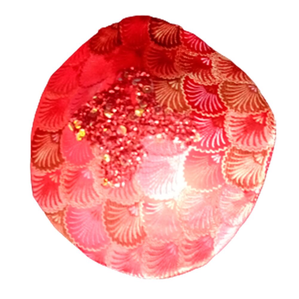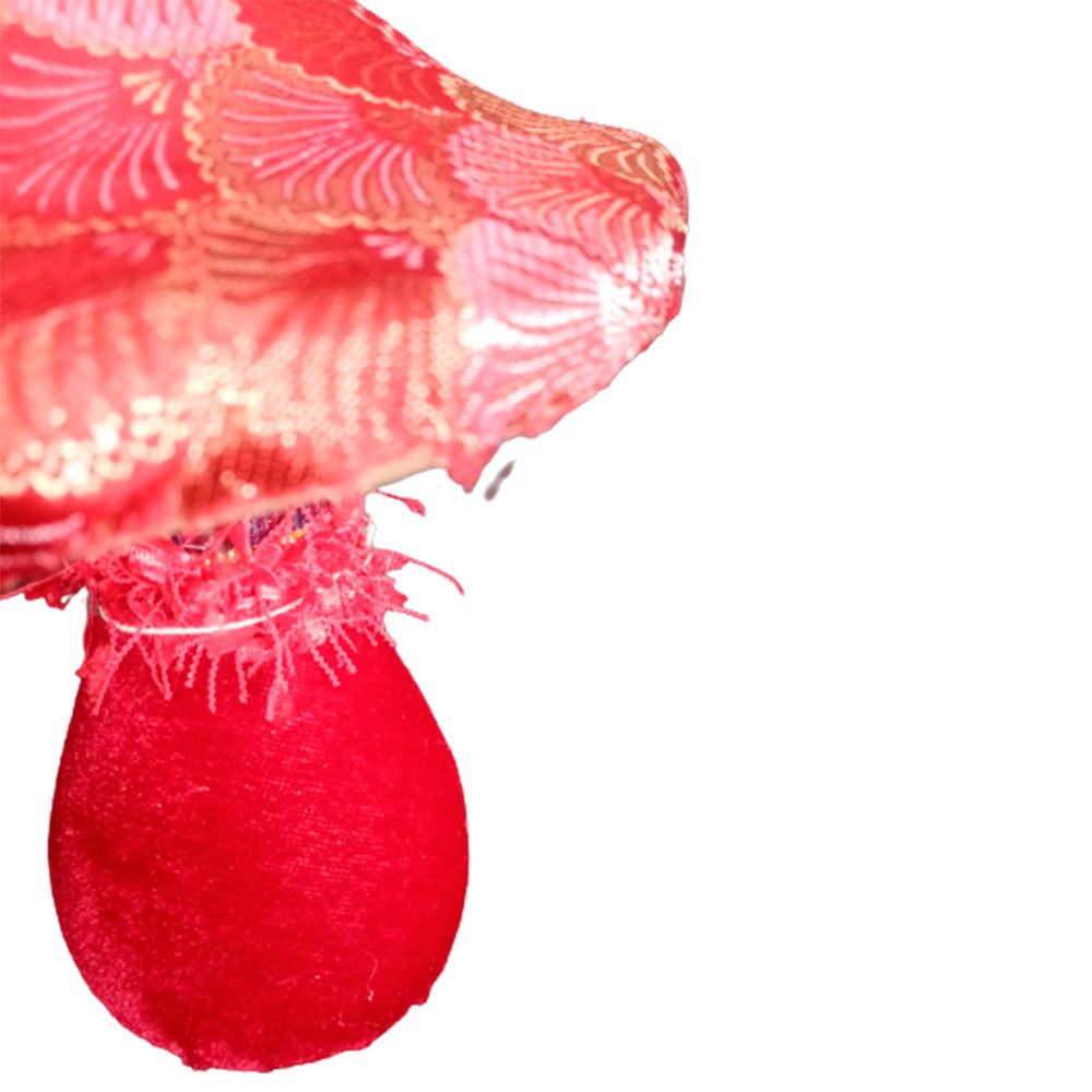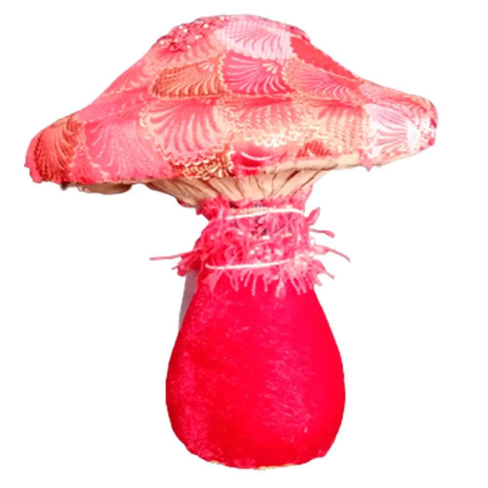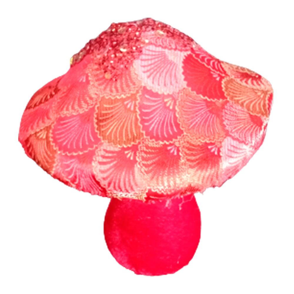 Hongo forrado de tela roja con chaquiras de 12x11x14cm