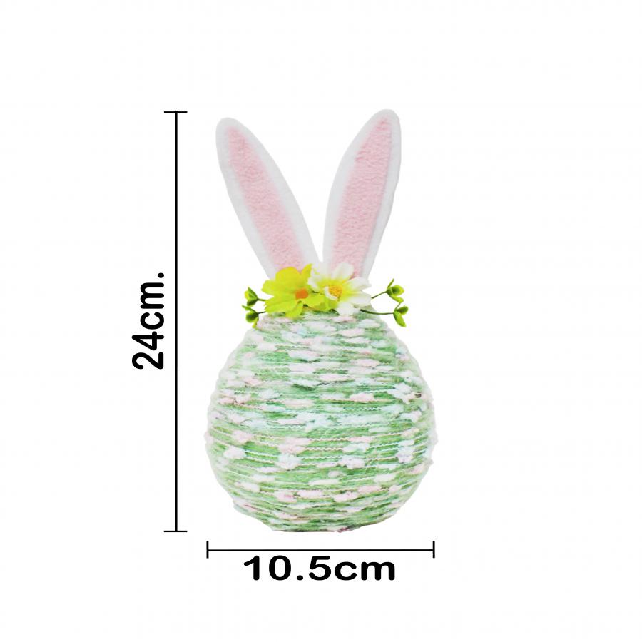 Este concepto decorativo transforma un símbolo tradicional en un escenario de riqueza táctil. Al elegir el Huevo de Pascua Forrado con Orejas de Conejo, inviertes en una pieza que combina la trama del estambre con la suavidad de la tela en las orejas. El contraste entre la forma geométrica del huevo y la fluidez de los detalles textiles ofrece un impacto visual muy equilibrado y atractivo para tus invitados.