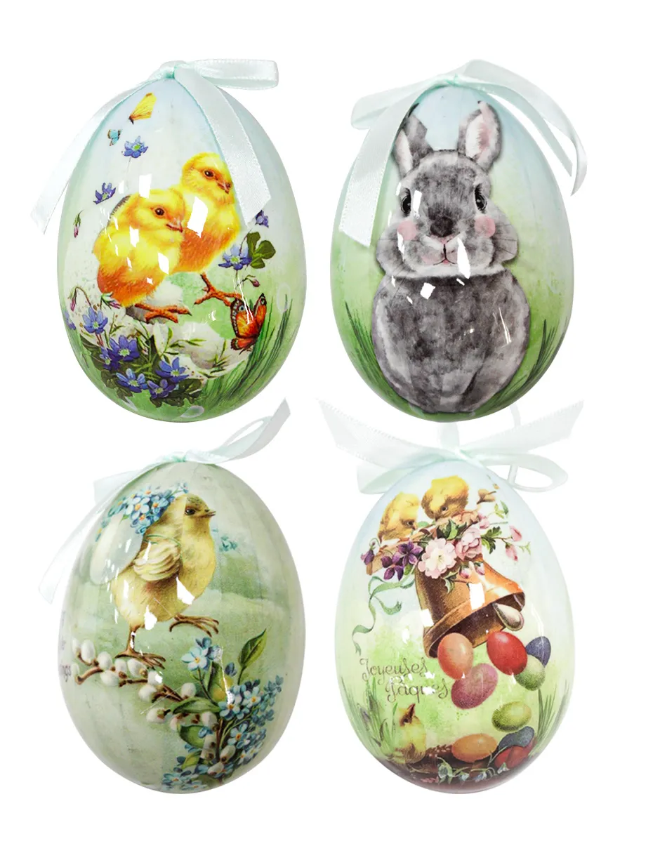 También transmite una vitalidad única a través de su acabado texturizado que captura la esencia de la naturaleza renaciente. Su apariencia refinada, resaltada por delicados lazos de satén blanco que permiten colgarlos con facilidad, invita a la admiración constante en cada momento del día. Funciona perfectamente en cualquier circunstancia decorativa de alto nivel durante la festividad de Pascua. De hecho, este elemento permite que tu rincón festivo resalte con mucha fuerza hoy mismo de forma imponente. Además, su estética simboliza la prosperidad y el nuevo comienzo de la temporada. Representa la vitalidad de una decoración organizada con los más altos estándares.