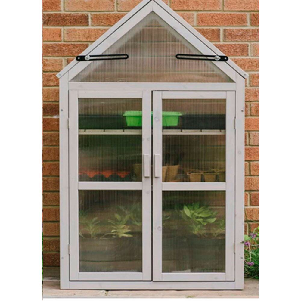 Invernadero de madera gris con cristal de policarbonato de 70.5x41x132cm