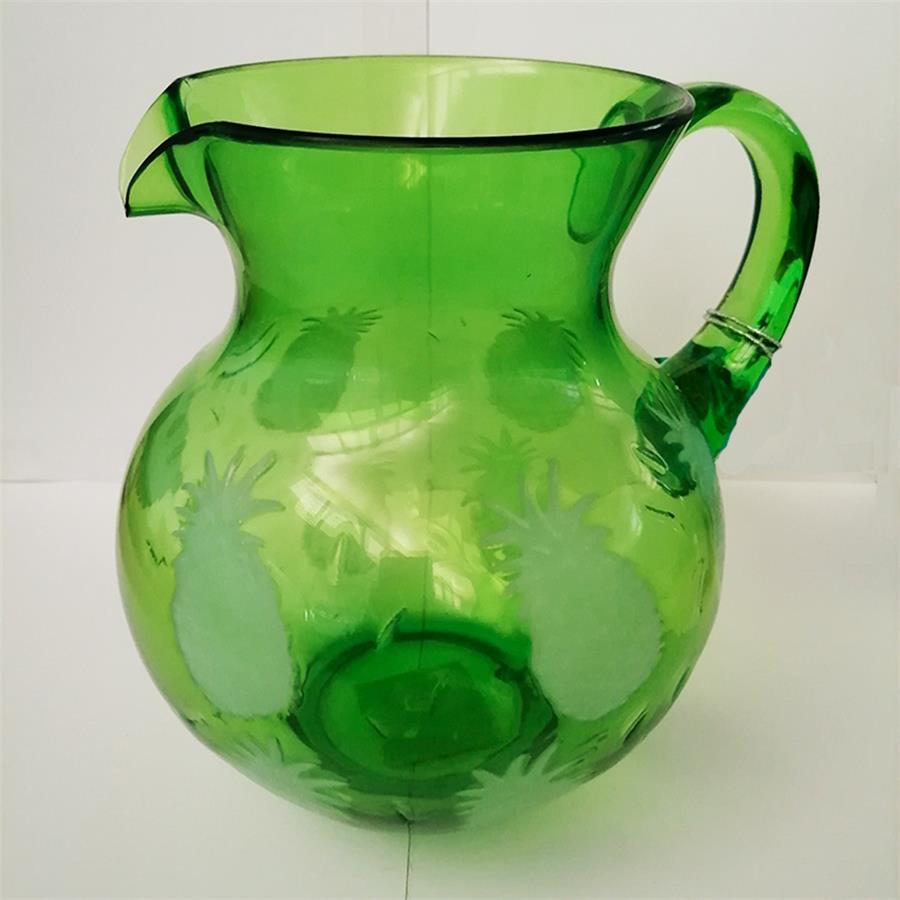 Jarra de servir en acrílico verde fresco con una cómoda agarradera. Ideal para servir limonadas y aguas frescas. El material es acrílico. Medidas: 22 x 23 cm.
