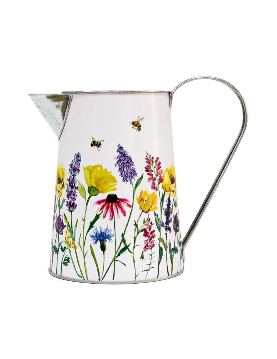 Jarra de metal diseño flores de colores con abejas volando de 20.5x13x16.5x17cm