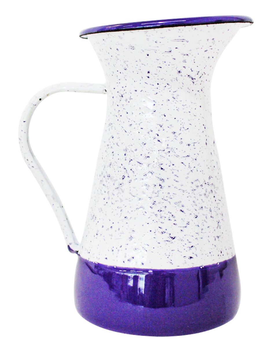 Jarra de peltre morado con blanco y puntos de 12x12x20cm