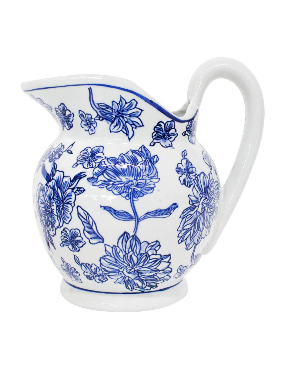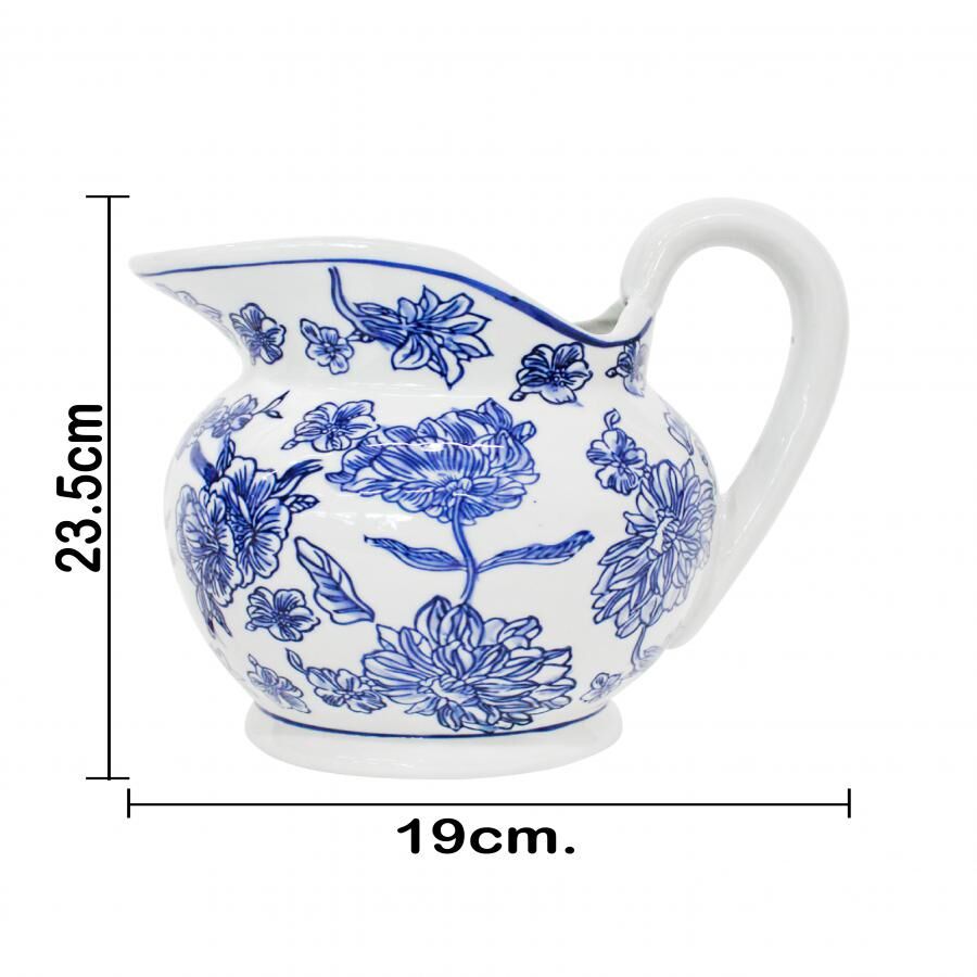 Jarra de porcelana estampado flores azules de 19x22x23.5cm