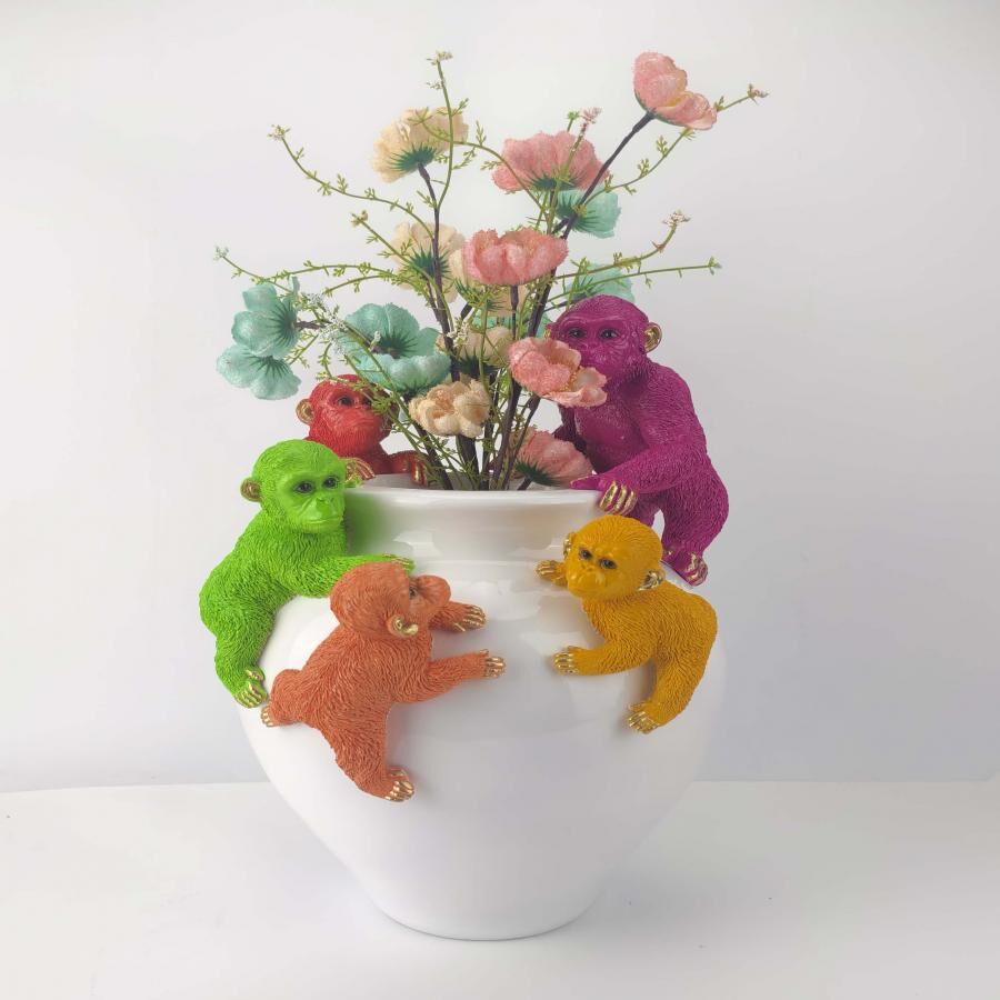 Jarron blanca con changos de colores en relieve de 31.5×31.5x39cm
