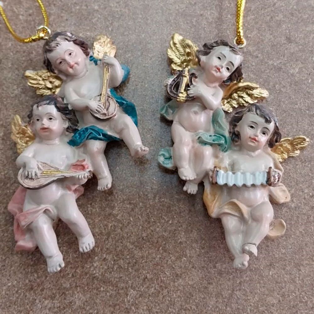 Juego de 2 Ángeles de poliresina con instrumentos musicales para colgar de 7.2cm