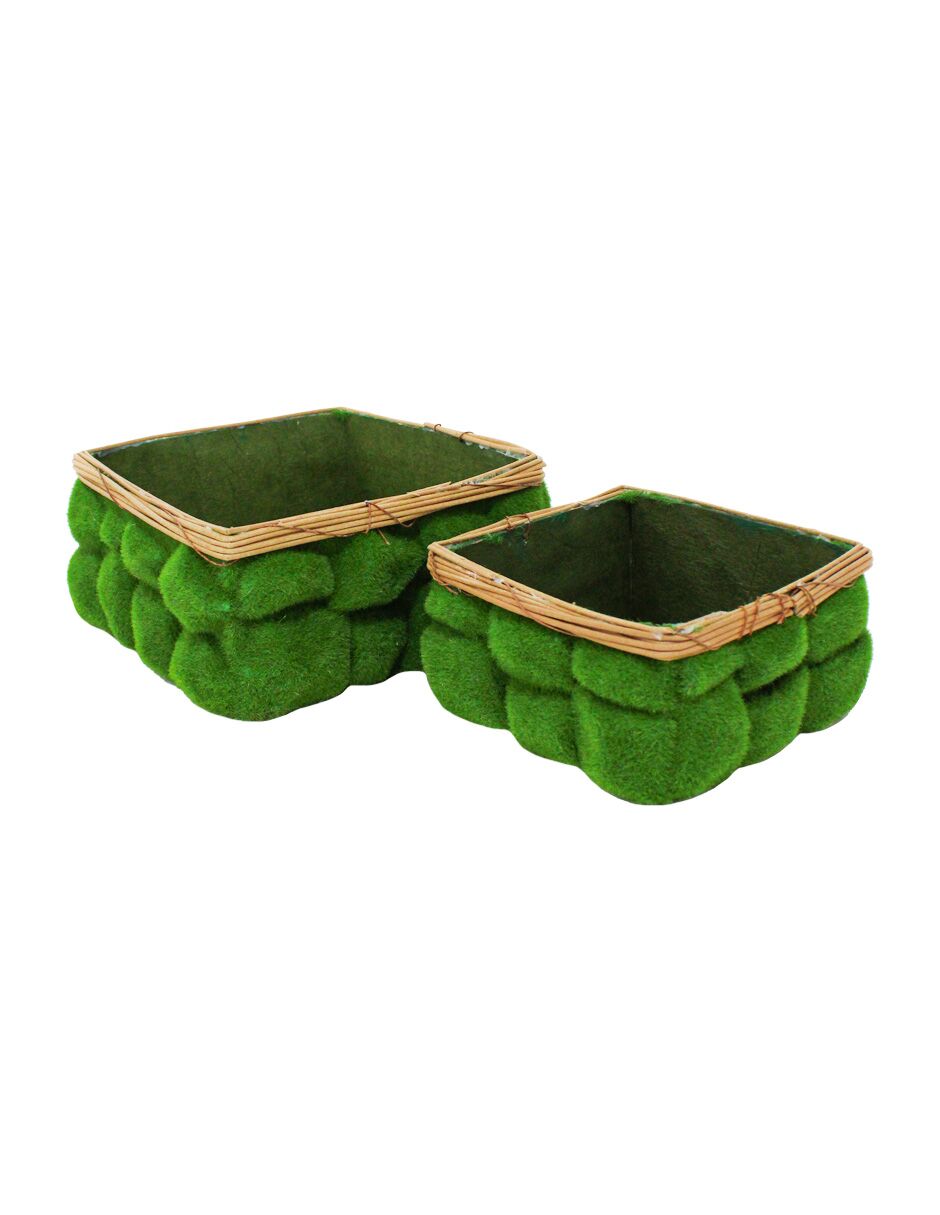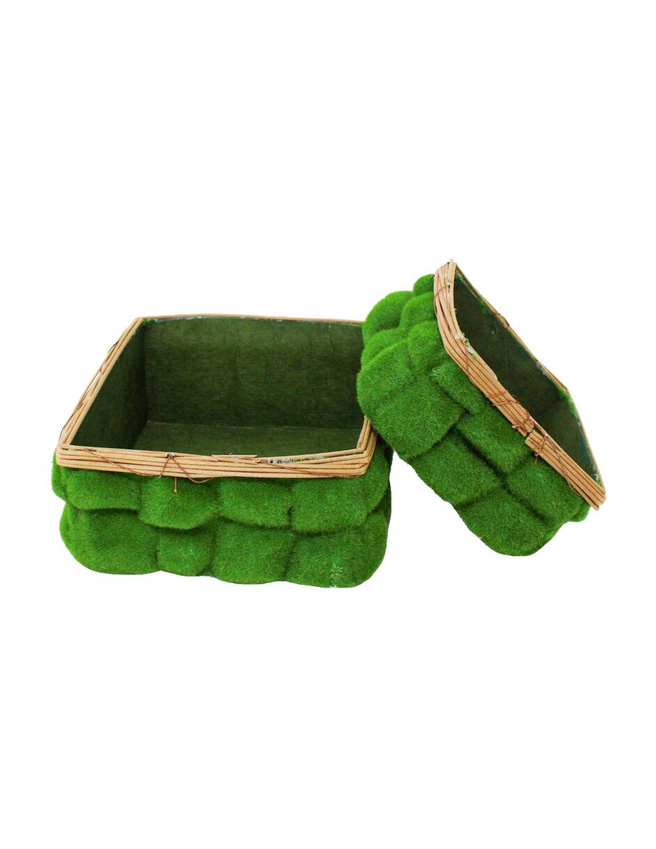 Juego de 2 cajas cuadradas flocadas verde de 20x20x8/25x25x11cm